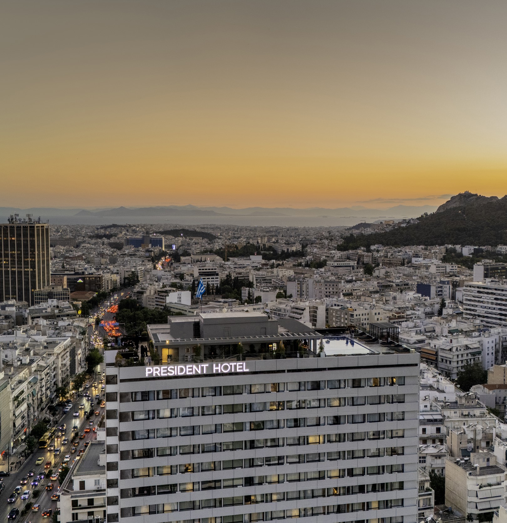 To President Hotel ανήκει, χωρίς αμφιβολία, στη δεύτερη κατηγορία. Εδώ και δεκαετίες στέκεται αγέρωχο στην εμβληματική Λεωφόρο Κηφισίας, στο σημείο όπου η βόρεια πλευρά της Αθήνας συναντά το κέντρο, και είναι σαν να παρατηρεί από τις μεγάλες τζαμαρίες του την πόλη να αλλάζει. Να επιταχύνει, να εξελίσσεται, να μετασχηματίζεται κάτω από τους γρήγορους ρυθμούς της σύγχρονης πραγματικότητας. Παρόλα αυτά, καταφέρνει να παραμένει ένα σταθερό σημείο αναφοράς για όλους εμάς που περνάμε σχεδόν καθημερινά από μπροστά του, ρίχνοντας κλεφτές ματιές στο εντυπωσιακό κτήριο που αποτελεί εδώ και δεκαετίες συνώνυμο της ίδιας της πόλης.