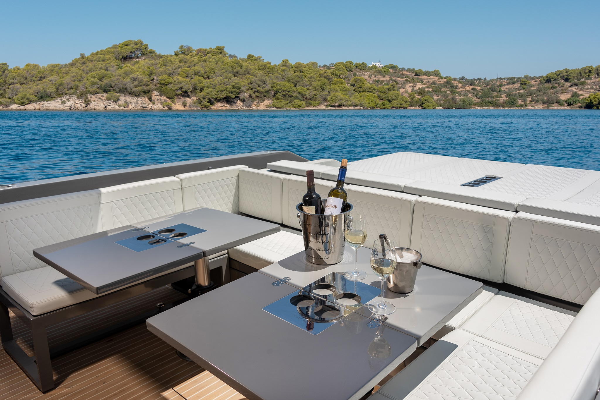 Απομεσήμερο. Έχεις μόλις 24 ώρες που έχεις φύγει από την πόλη, αισθάνεσαι όμως λες και λείπεις μια εβδομάδα. Και έχεις ακόμα μία μέρα μπροστά σου, πράγμα που σου επιτρέπει να μη μείνεις περιορισμένος στην Τζιά: η Κύθνος βρίσκεται πολύ κοντά. Άλλωστε, όσο μοναδική εμπειρία είναι η ζωή πάνω στο D42 Open, άλλο τόσο μοναδικό είναι και το ταξίδεμά του. Η γάστρα με βαθύ V επιτρέπει την επίτευξη ομαλής πλεύσης στο νερό σε υψηλές ταχύτητες, ενώ το πλάτος και η άριστη κατανομή του βάρους παρέχουν ασύγκριτη σταθερότητα.