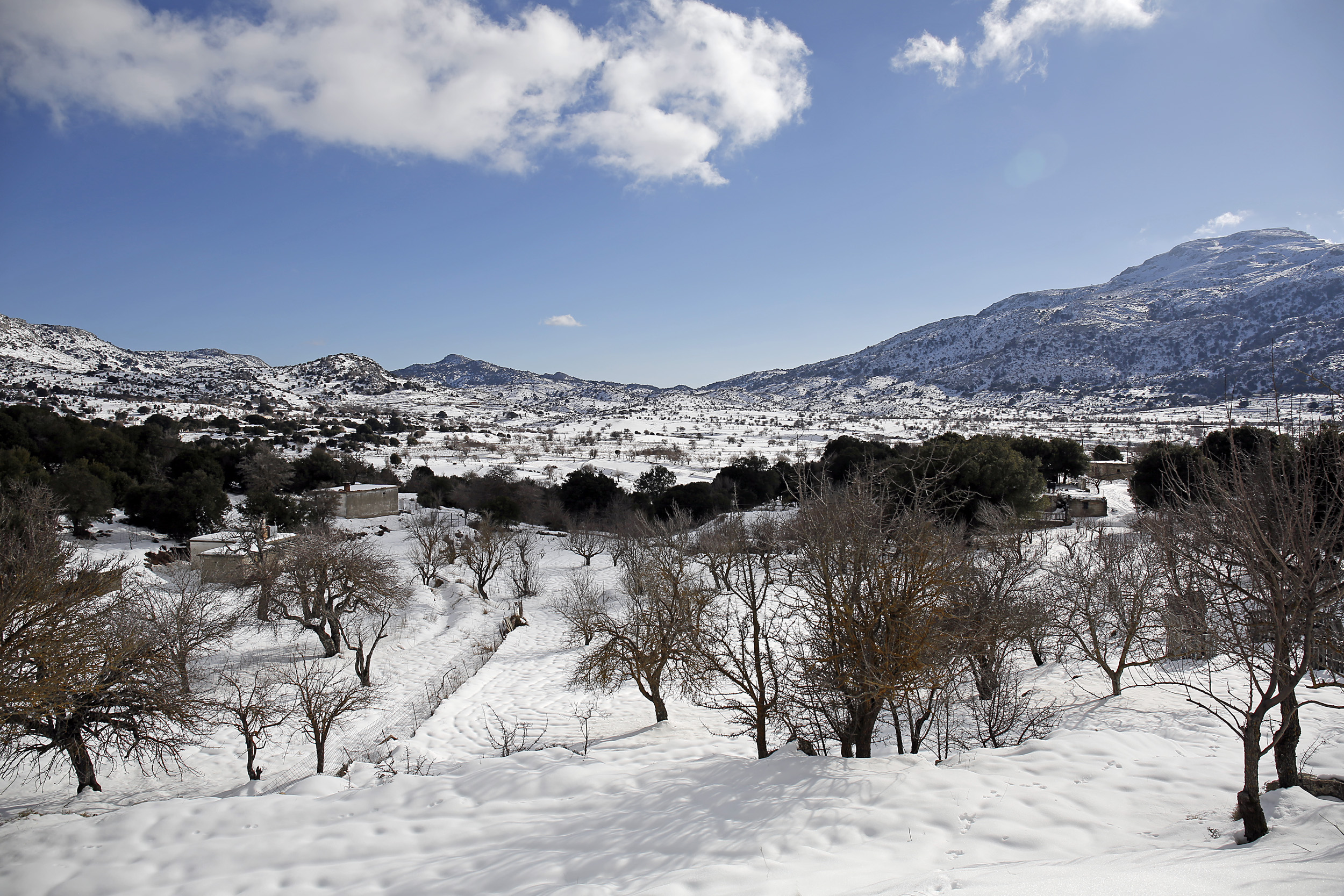 Όσο οδηγούμε στο οδικό δίκτυο του οροπεδίου και σε υψόμετρο άνω των 1.000 μέτρων, οι τυχεροί, πλην του οδηγού, έχουν συνέχεια τα μάτια τους στραμμένα έξω από το παράθυρο. Το κατάλευκο τοπίο είναι μαγευτικό, ταυτόχρονα όμως «κρύβει» ότι η συγκεκριμένη περιοχή είναι από τις πιο εύφορες της Κρήτης. Εδώ, παράγονται πατάτες αλλά και κηπευτικά, αχλάδια, μήλα και καρύδια. Κάποια στιγμή αφήνουμε το αυτοκίνητο για να απολαύσουμε το χιόνι από κοντά. Είναι μοναδική αυτή η αίσθηση ευεξίας που μόνο το βουνό και ο χειμώνας μπορούν να μεταδώσουν.