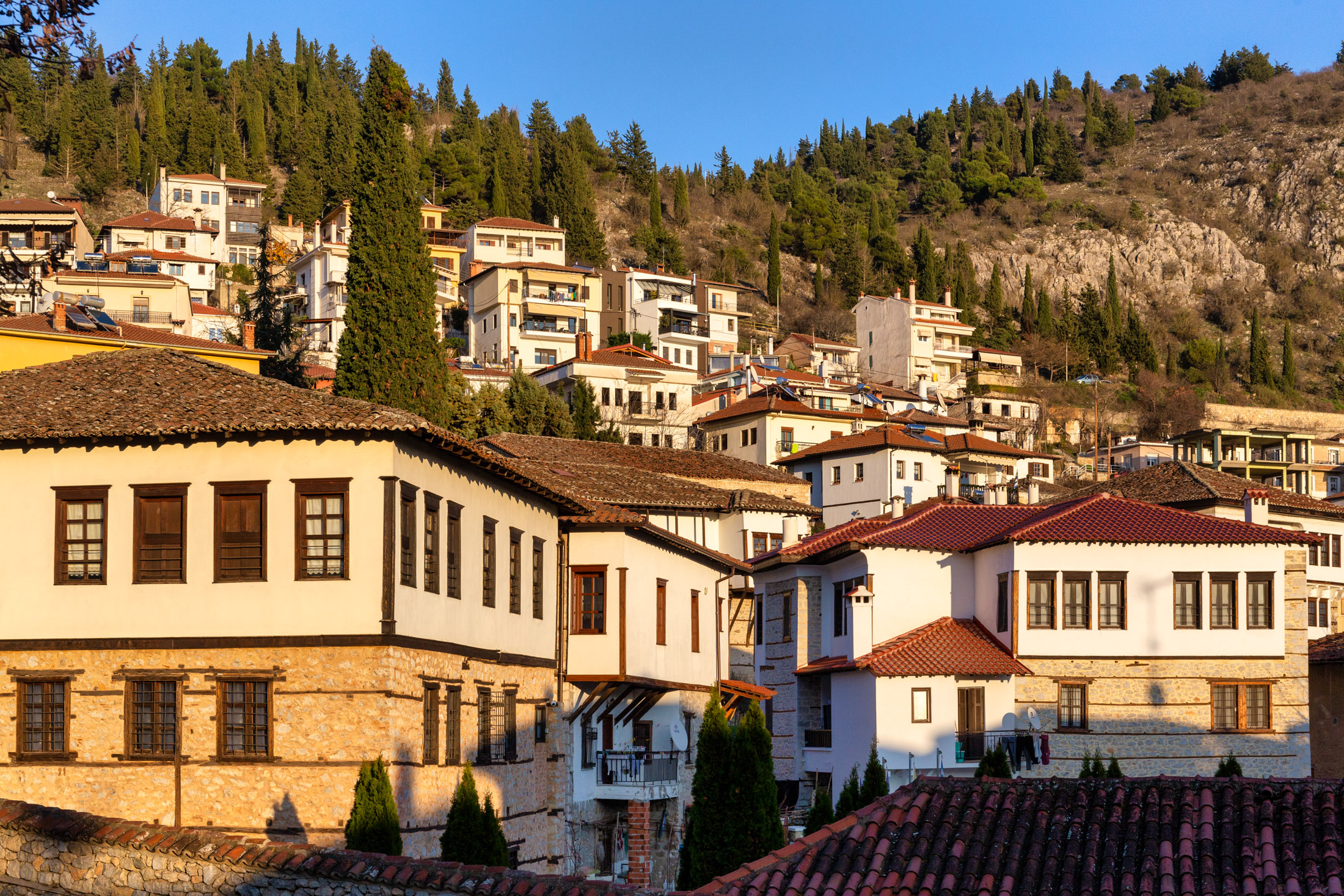 Στην νότια πλευρά της πόλης, πάλι, στο φημισμένο Ντολτσό, την αρχοντική γειτονιά που δεσπόζει στη νότια πλευρά της πόλης, ο επισκέπτης έχει την αίσθηση ότι ταξιδεύει πίσω στο χρόνο περπατώντας στα καλντερίμια ανάμεσα στα παλιά μακεδονίτικα αρχοντικά -με τα ξύλινα χαγιάτια και τα πολύχρωμα βιτρό. Πολλά παλιά αρχοντικά έχουν αναπαλαιωθεί και λειτουργούν ως μουσεία, όπως των «Αφών Εμμανουήλ» (Ενδυματολογικό Μουσείο), το «Νεράτζη Αϊβάζη» (Λαογραφικό Μουσείο) και η οικία του Μακεδονομάχου Αναστασίου Πηχιών (Μουσείο Μακεδονικού Αγώνα).