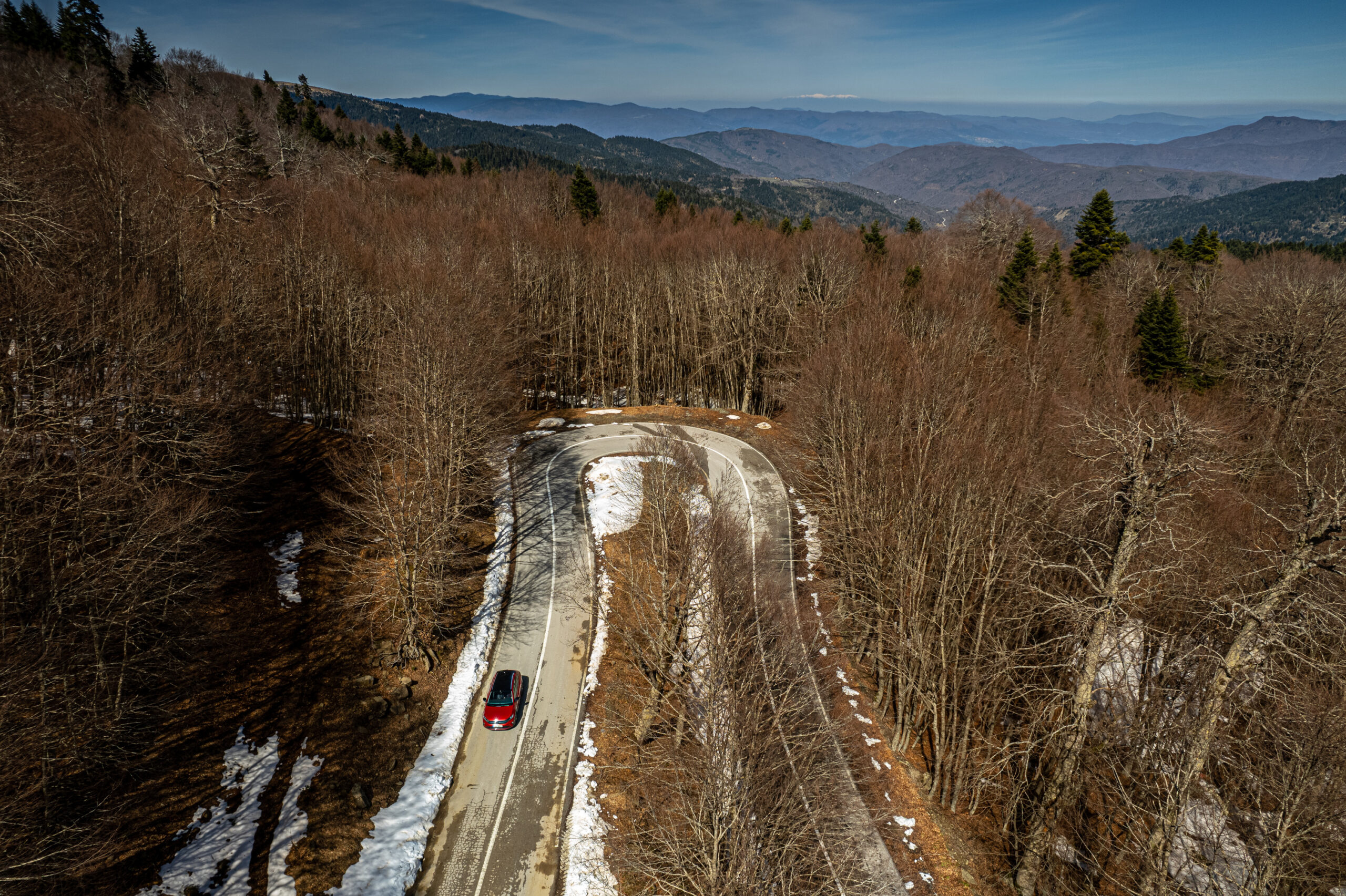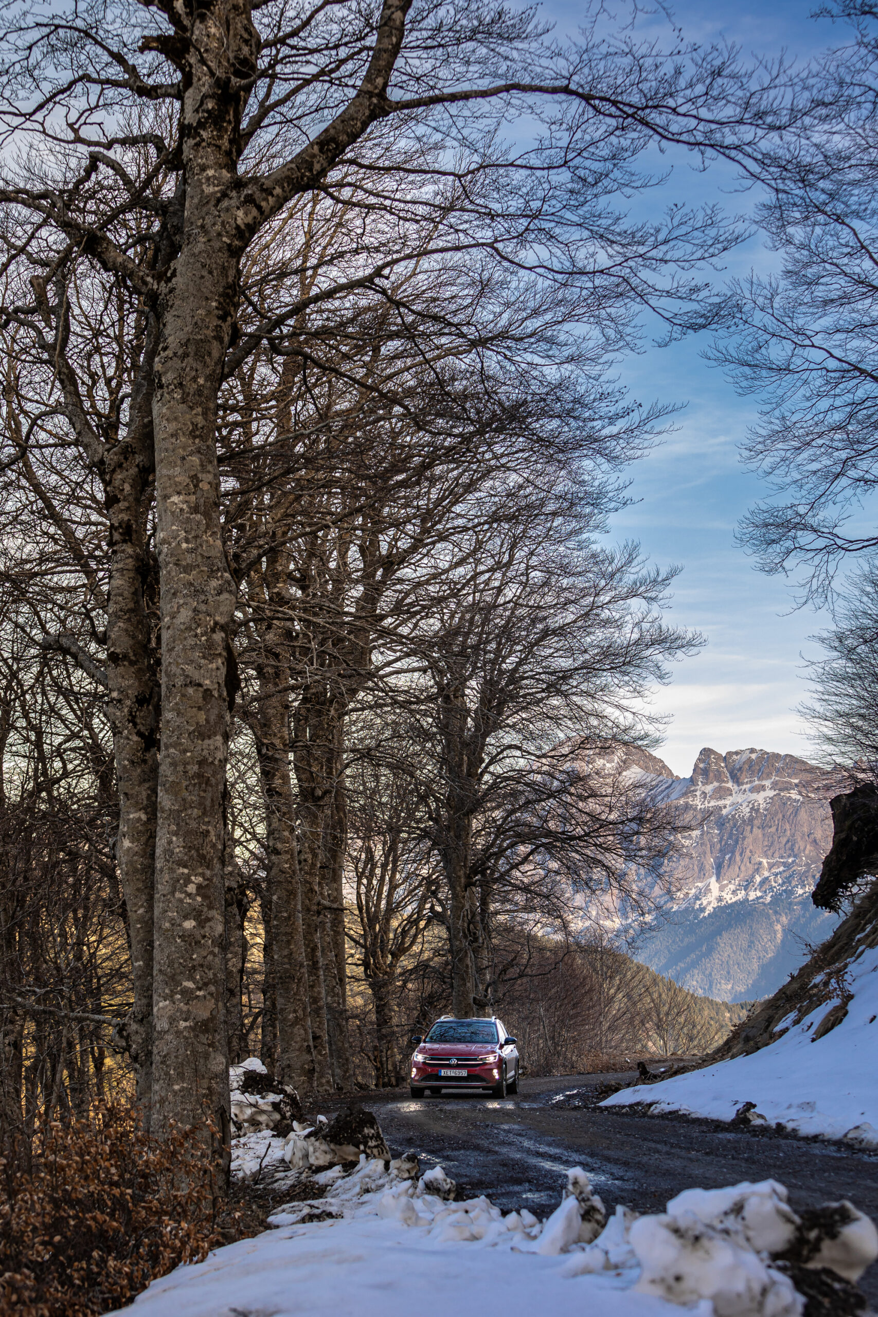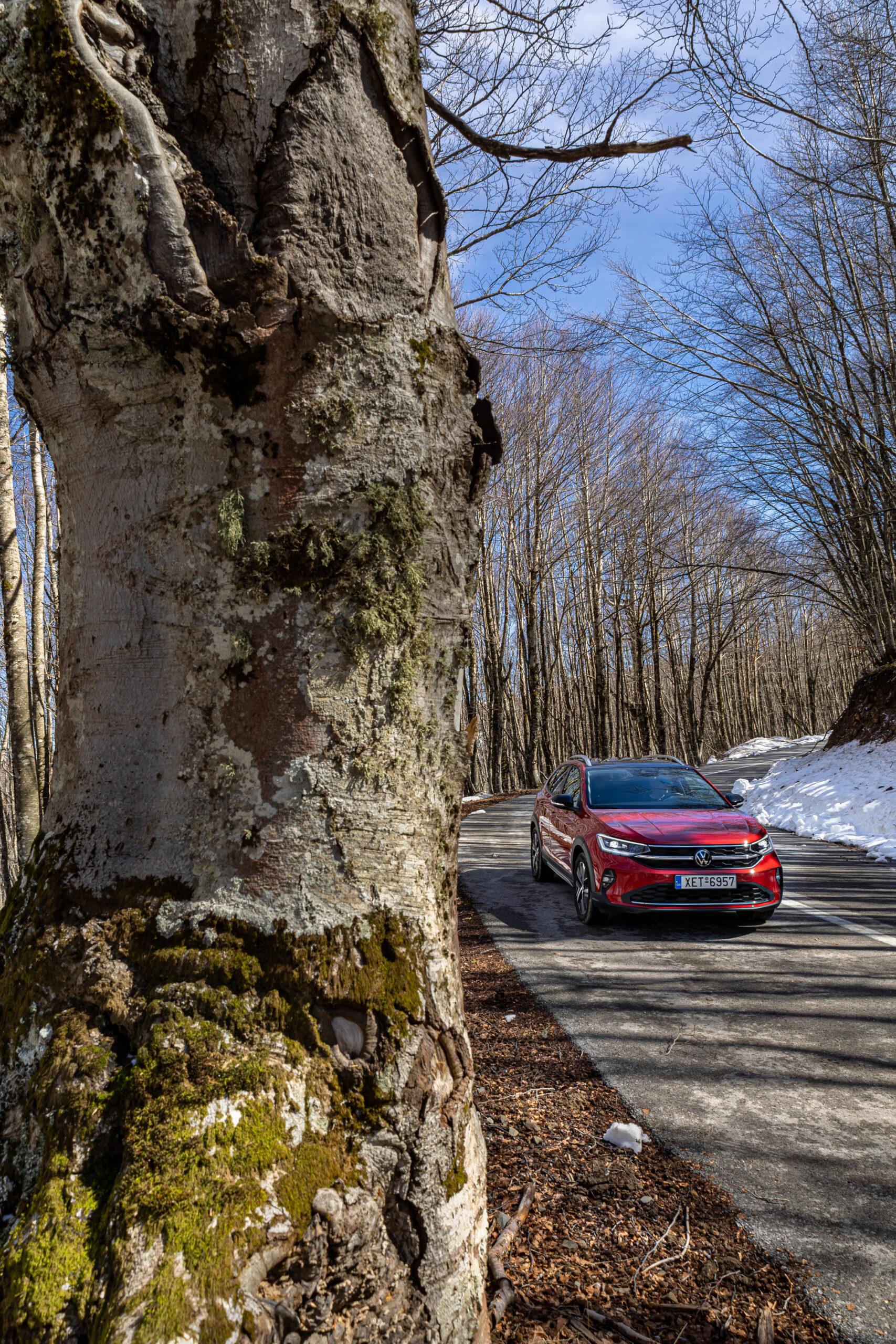 Ο δρόμος είχε αρκετή περιπέτεια αφού το πέρασμα του χειμώνα είχε αφήσει τα σημάδια του με κυρίαρχα στοιχεία την άφθονη λάσπη και τα νεροφαγώματα που παραμονεύουν ενώ εσύ αναπόφευκτα θα μαγνητίζεσαι από τις αλλεπάλληλες εικόνες μιας σχεδόν παρθένας φύσης. Εκεί το αυτοκίνητό μας έδειξε με περίσσεια πειθώ τον χαρακτήρα του, την αξιοπιστία του και την ευκολία στη χρήση, βοηθούμενο τόσο από την αυξημένη απόστασή του από το έδαφος που φτάνει τα 17 εκατοστά, όσο και από το αυτόματο κιβώτιο διπλού συμπλέκτη DSG.