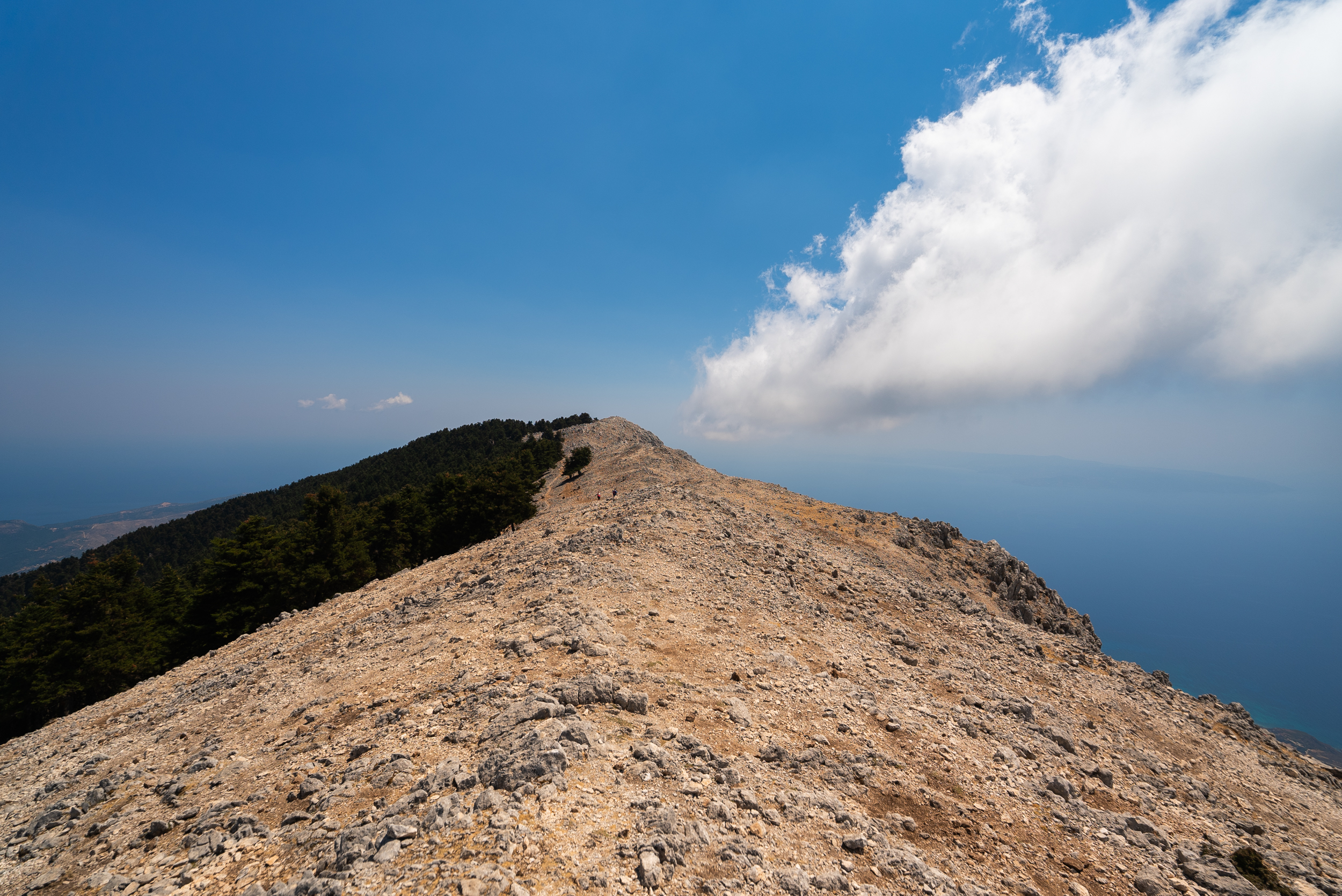 Μετά από αρκετή περιπλάνηση σε παραθαλάσσιες τοποθεσίες, είχε έρθει η ώρα της εξερεύνησης στα ορεινά. Ήμασταν καθ΄ οδόν για τον Αίνο, τον κύριο ορεινό όγκο και το ψηλότερο βουνό στα Επτάνησα με την ψηλότερη κορυφή του, τον Μεγάλο Σωρό να φτάνει τα 1.628 μέτρα. Η διαδρομή μέσα στην πυκνή βλάστηση με κυρίαρχη την μαύρη ελάτη, γνωστή ως Κεφαλληνιακή, αποδείχθηκε μια διαφορετική ευκαιρία ψυχαγωγίας. Σπουδαία η οικολογική αξία του δάσους, επιβεβαιώνεται από την αναγνώρισή του ως Εθνικού Δρυμού από το 1962. Ακολουθώντας ένα πεζοπορικό μονοπάτι περίπου μιας ώρας (απαραίτητη προϋπόθεση τα κλειστά και άνετα παπούτσια), φτάνεις στην κορυφή, το ψηλότερο σημείο της Κεφαλονιάς, από όπου η θέα σε μεγάλο βάθος του ορίζοντα, είναι αφοπλιστική. Αισθάνεσαι σαν να εποπτεύεις μέσα από τις διαδοχικές κορυφογραμμές τα θαλάσσια περάσματα και τα γειτονικά νησιά.