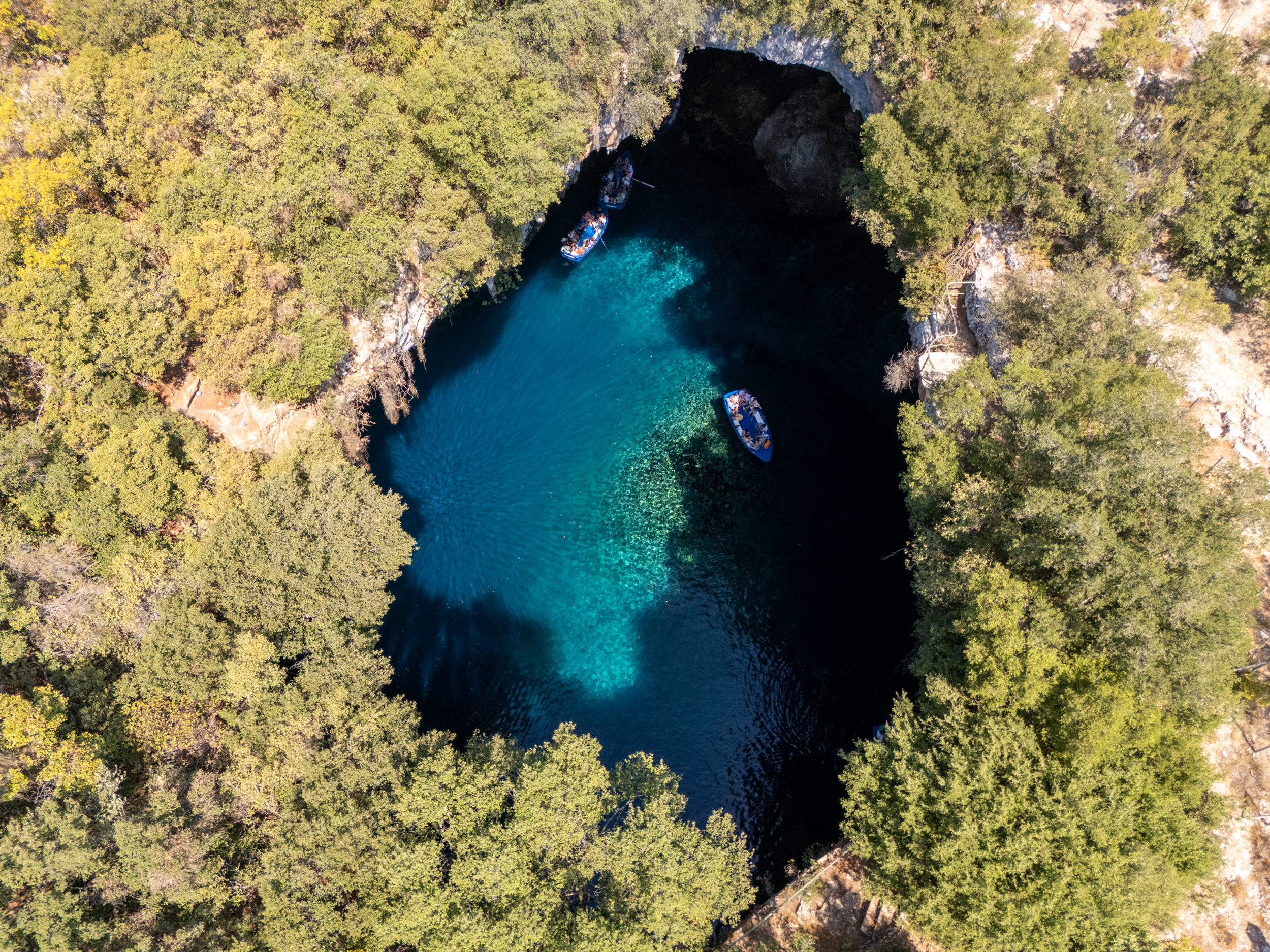 Επόμενο τοπόσημο της περιοχής, το Λιμνοσπήλαιο Μελισσάνη με σπουδαίο γεωλογικό, οικολογικό, μυθολογικό και αρχαιολογικό ενδιαφέρον. Μετά από σεισμό αποκολλήθηκε και έπεσε τμήμα της οροφής του Σπηλαίου διαμορφώνοντας ένα φυσικό άνοιγμα σε αυτό το ξεχωριστό γεωλογικό μνημείο με το θολωτό σχήμα, τα βαθυγάλανα νερά της ανοιχτής λίμνης, την βλάστηση και τους σταλακτίτες σε ιδιαίτερους σχηματισμούς. Κορυφαία στιγμή η ώρα 12 το μεσημέρι όταν οι ακτίνες του ήλιου εισχωρούν κάθετα και το φως αναδεικνύει την τριλογία των χρωμάτων, το βαθύ γαλάζιο της λίμνης, το πράσινο της βλάστησης και το καφέ το πετρωμάτων. Μοναδικά ισορροπημένα συνθέτουν ένα μεγαλόπρεπο σκηνικό μυθικών διαστάσεων, καθώς αρχαιολογικά ευρήματα ήδη από τον 4ο αιώνα π.Χ. πιστοποιούν την αρχαία λατρευτική χρήση του Σπηλαίου, το οποίο αποκαλείται και Σπήλαιο των Νυμφών.