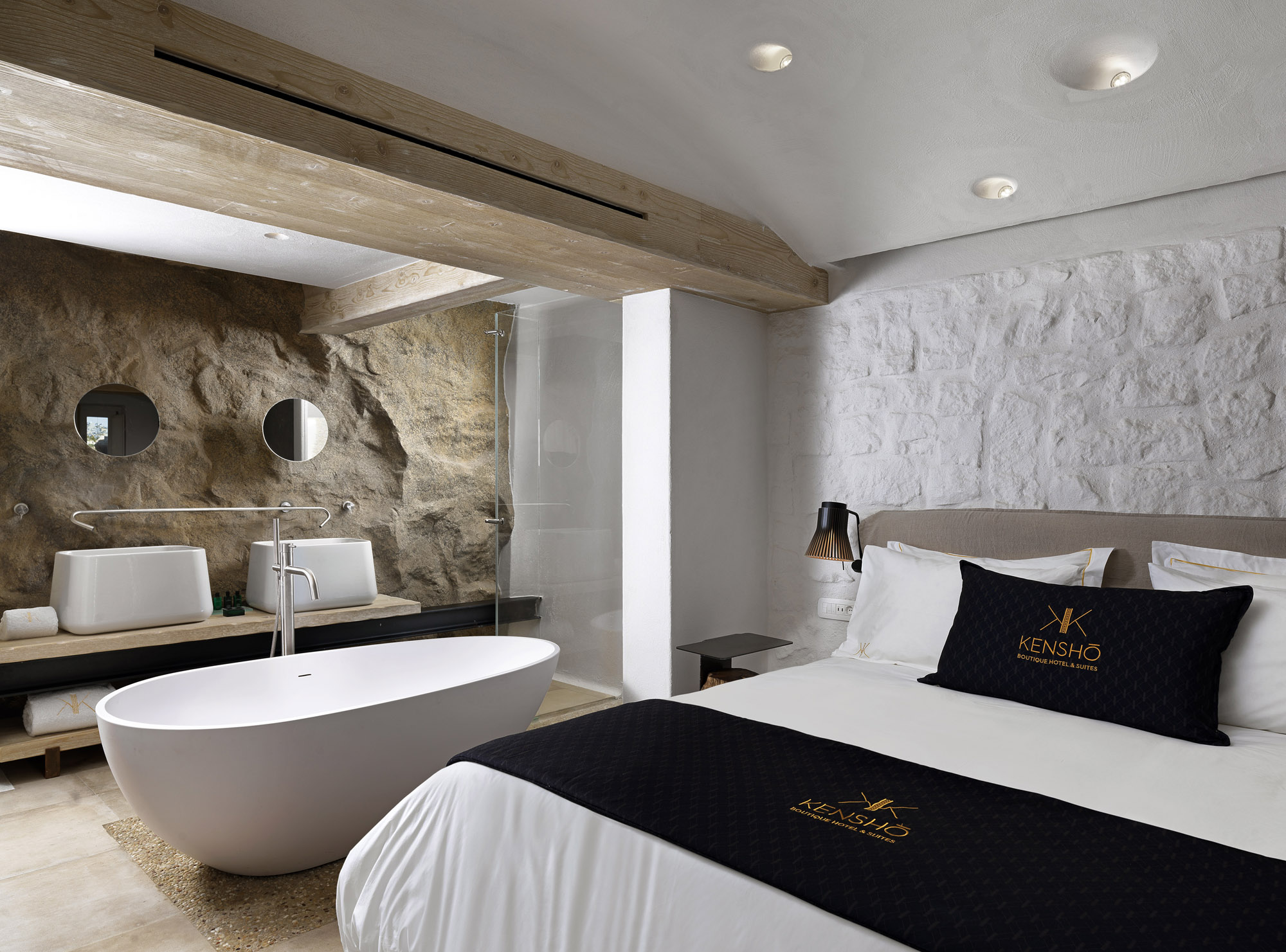 Εκεί, πάνω από τα κρυστάλλινα νερά του Ορνού, ένα boutique, υπέρκομψο ξενοδοχείο μάς καλωσορίζει σε έναν κόσμο που συνδυάζει ιδανικά τον κοσμοπολιτισμό της Μυκόνου με την ηρεμία ενός χαλαρωτικού «παραδείσου» που βρίσκεται μία ανάσα από μία εκ των ωραιότερων ακτών ολόκληρου του νησιού. Το Kenshō Ornos απλώνεται μπροστά στα μάτια μας, σε ένα μοναδικό σημείο με θαυμάσια θέα στη θάλασσα και τον υπόλοιπο οικισμό, δίνοντας τη δική του διάσταση στον όρο «bohemian luxury». Eίναι αυτή η αίσθηση ότι ένας χώρο, απόλυτα πολυτελής και υπερσύγχρονος, μπορεί την ίδια στιγμή να μας επιτρέψει να εμβαθύνουμε στην πιο ουσιαστική πλευρά των διακοπών, σε αυτή την ανάγκη που έχουμε όλοι μας για πραγματική ξεκούραση και αποσύνδεση από την πιεστική καθημερινότητα.