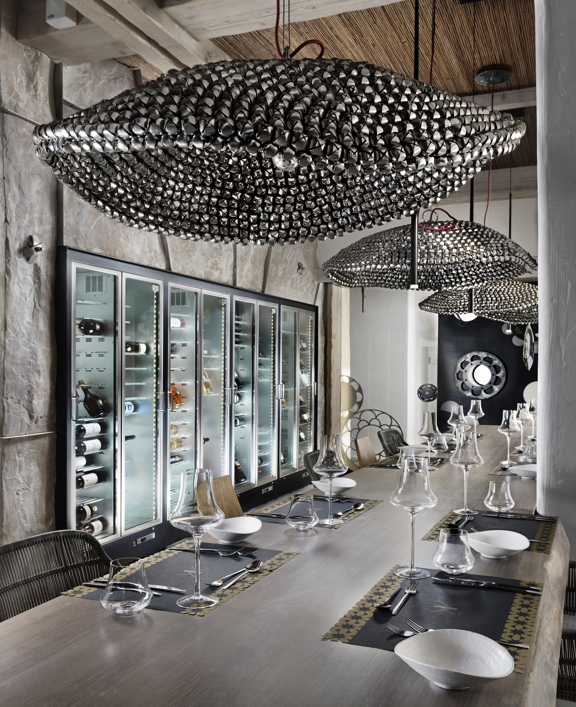 Ταυτόχρονα, όμως, η φινετσάτη πολυτέλεια ήταν πάντα παρούσα μέσα από μοναδικά έπιπλα και διακοσμητικά αντικείμενα των οίκων Gervasoni, Imperfetto Lab, Kenneth Cobonpue, Tom Dixon, Mogg, Riva 1920.