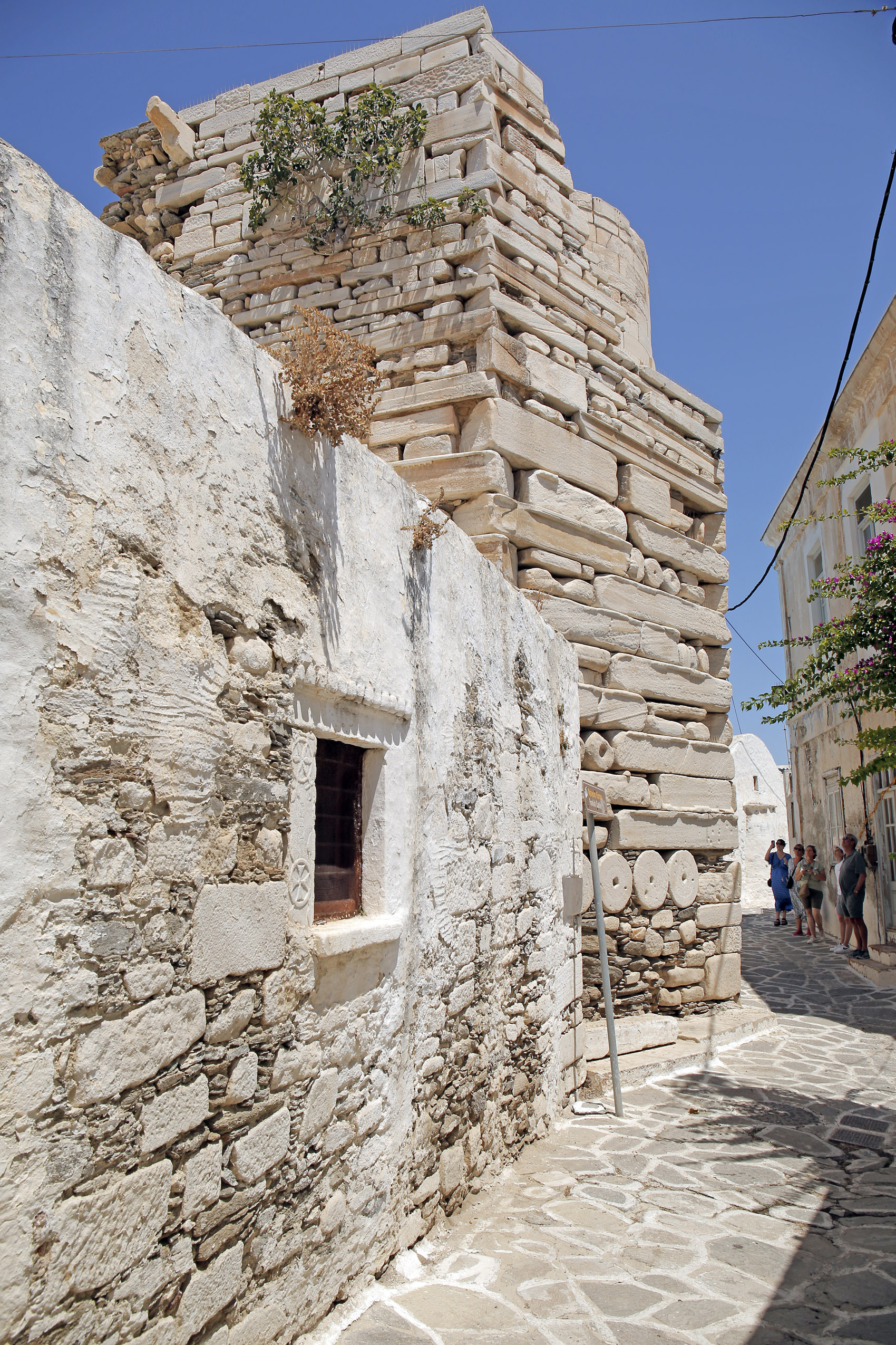 Μετά την επίσκεψη στον διάσημο για τους εορτασμούς του Δεκαπενταύγουστου ναό, κατευθυνθήκαμε νοτιοδυτικά, στο λόφο του Αγίου Κωνσταντίνου, θέση της αρχαίας ακρόπολης της Πάρου και μετέπειτα του μεσαιωνικού, ενετικού Φραγκοκάστελλου, όπως είναι γνωστό το Κάστρο της Παροικιάς. Το τμήμα που σώζεται, αν και μικρό, εντυπωσιάζει με τα ένθετα μάρμαρα και τα μέρη από αρχαίες κολώνες που έχουν ενσωματωθεί στο τείχος του. Αυτό που μας μάγεψε είναι η εκπληκτική θέα που χάνεται στο αιγαιοπελαγίτικο γαλάζιο, πέρα από τον κόλπο της Παροικιάς.