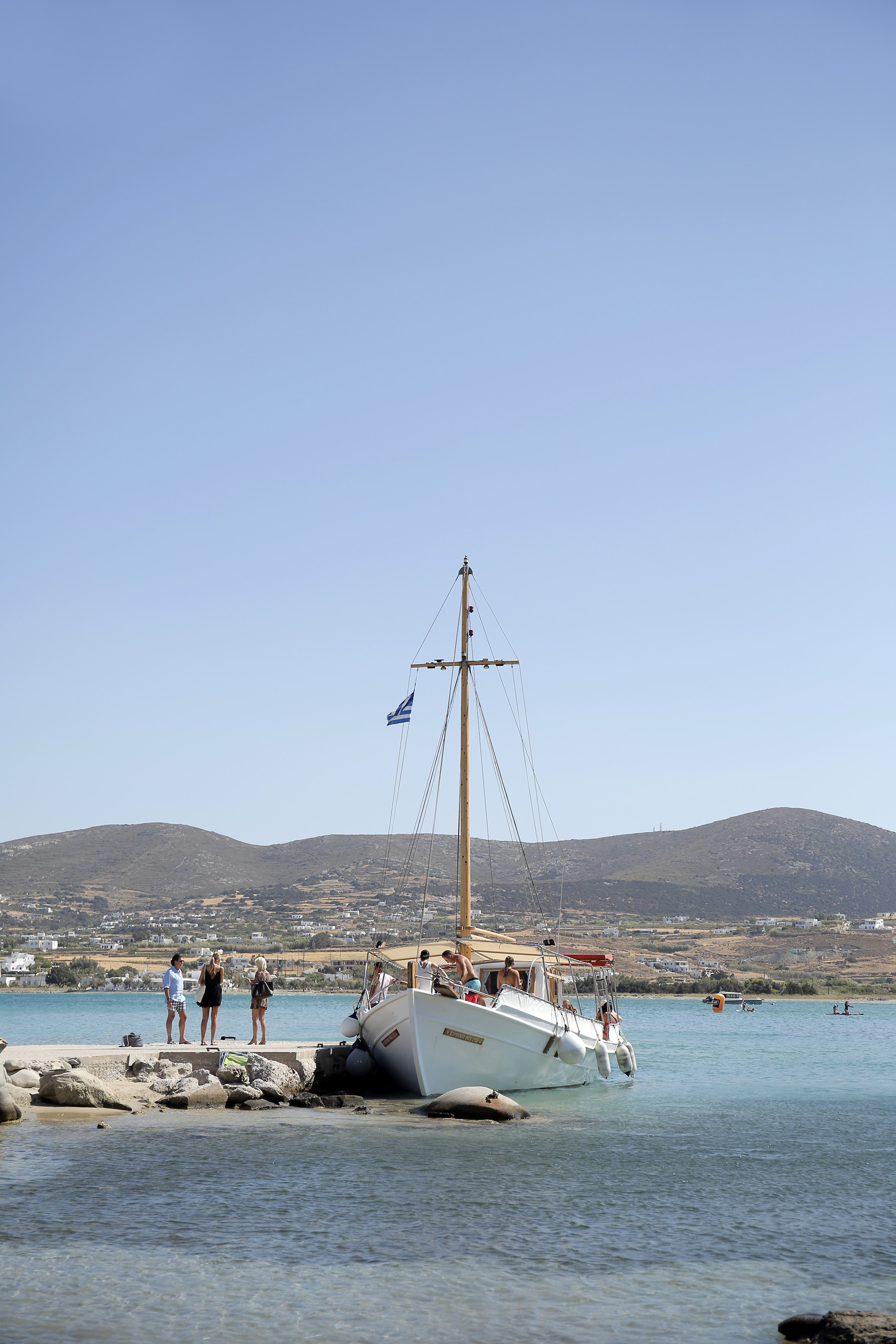 Στο μεταξύ, η πτήση μας που ήταν αργά το απόγευμα, μας επέτρεψε να αναζητήσουμε μετά τις οργανωμένες αμμουδερές ακτές της Σάντα Μαρία και της Μικρής Σάντα Μαρία, την απομόνωση και το άκουσμα μόνο των τζιτζικιών στην παραλία Λάγγερη, η οποία έμοιαζε με εξωτικό, μυστικό προορισμό. Κλείσαμε το ταξίδι μας με μια τελευταία βόλτα στη Νάουσα. Αυτή τη φορά όχι μόνο για φαγητό αλλά και για αγορές. Προμηθευτήκαμε παριανά προϊόντα, από θυμαρίσιο μέλι μέχρι φάβα. Τέλος, ανάμεσα στις χειροποίητες δημιουργίες που διαλέξαμε η καθεμιά, ήταν ένα κόσμημα-δώρο στον εαυτό της. Αυτό θα μας θύμιζε τις εμπειρίες που ζήσαμε στο νησί. Σε τρεις ημέρες πρόλαβε να μας δείξει το πιο ωραίο του πρόσωπο.