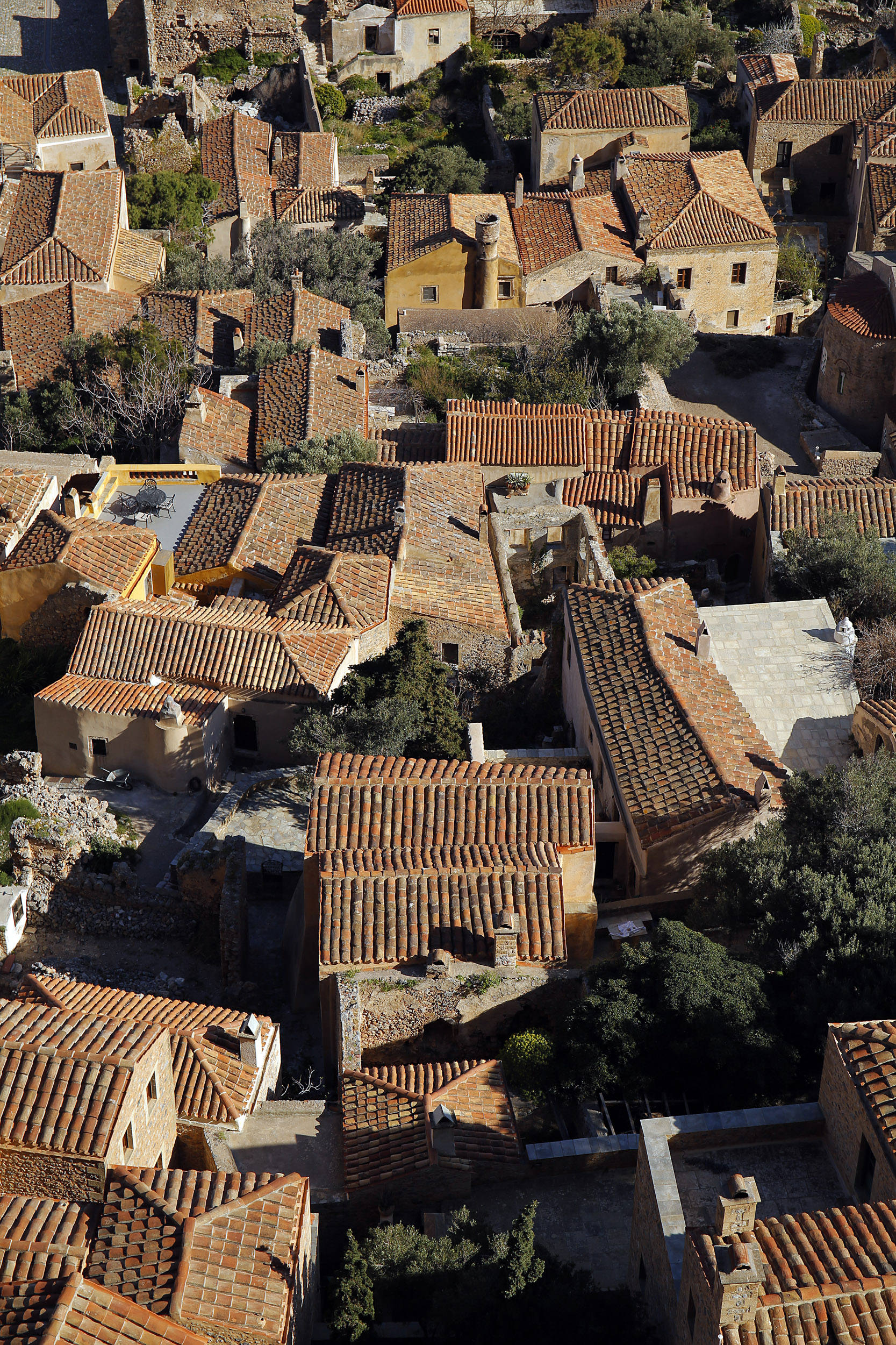 Οι λίθοι στα καλντερίμια είναι λείοι, γλιστεροί από το αέναο πέρα – δώθε κατοίκων και επισκεπτών ανά τους αιώνες. Με βήματα προσεκτικά, αμέσως μετά την πρώτη στοά της εισόδου, μια άλλη, μικρότερη στοά ανηφορίζει στο αριστερό χέρι, ακριβώς στην αρχή της κεντρικής οδού, γνωστής ως Μέσης Οδού κατά τη βυζαντινή περίοδο. Η οικία του ποιητή Γιάννη Ρίτσου, το πρώτο σπίτι στο δυτικό τείχος της Κάτω Πόλης, βρίσκεται εδώ. Λουσμένο στο φως, με θέα προς τη θάλασσα σχεδόν από παντού, είναι ένα σημείο αναφοράς, καλαίσθητο και άκρως ποιητικό από κάθε άποψη. Η προτομή του ποιητή στη βεράντα, ατενίζει τον θαλασσινό ορίζοντα με μια έκφραση παντοτινής έμπνευσης.