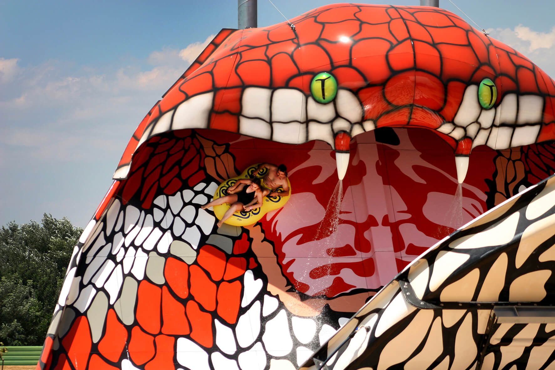 Και, βέβαια, δεν γίνεται να μην κάνετε ατέλειωτες βόλτες μέσα στα φουσκωτά σας πάνω στην εμβληματική νεροτσουλήθρα King Cobra, η οποία δεσπόζει και εκτείνεται από τη μία άκρη του χώρου μέχρι την άλλη. Δεν είναι μία απλή νεροτσουλήθρα, αλλά μία ξεχωριστή εμπειρία διασκέδασης από μόνη της, μοναδική στην Ελλάδα, μία τσουλήθρα που έχει βραβευτεί ως η καλύτερη της Ευρώπης για 8 συνεχόμενα χρόνια, ενώ θεωρείται μία από τις καλύτερες νεροτσουλήθρες σε ολόκληρο τον κόσμο.