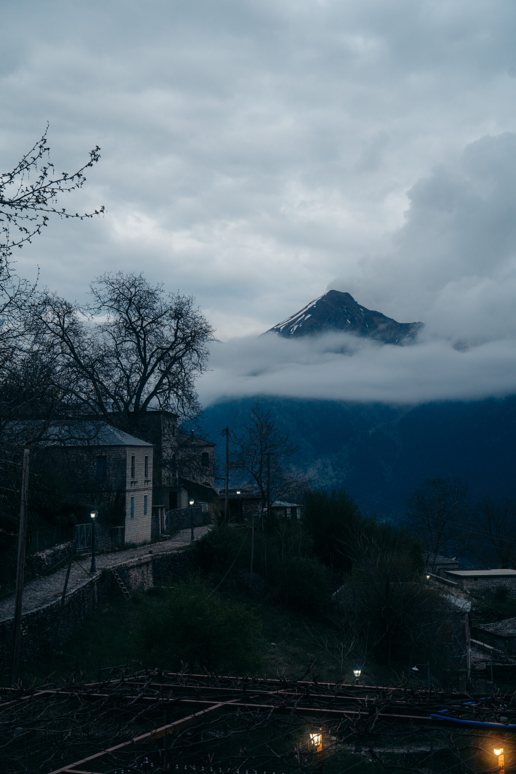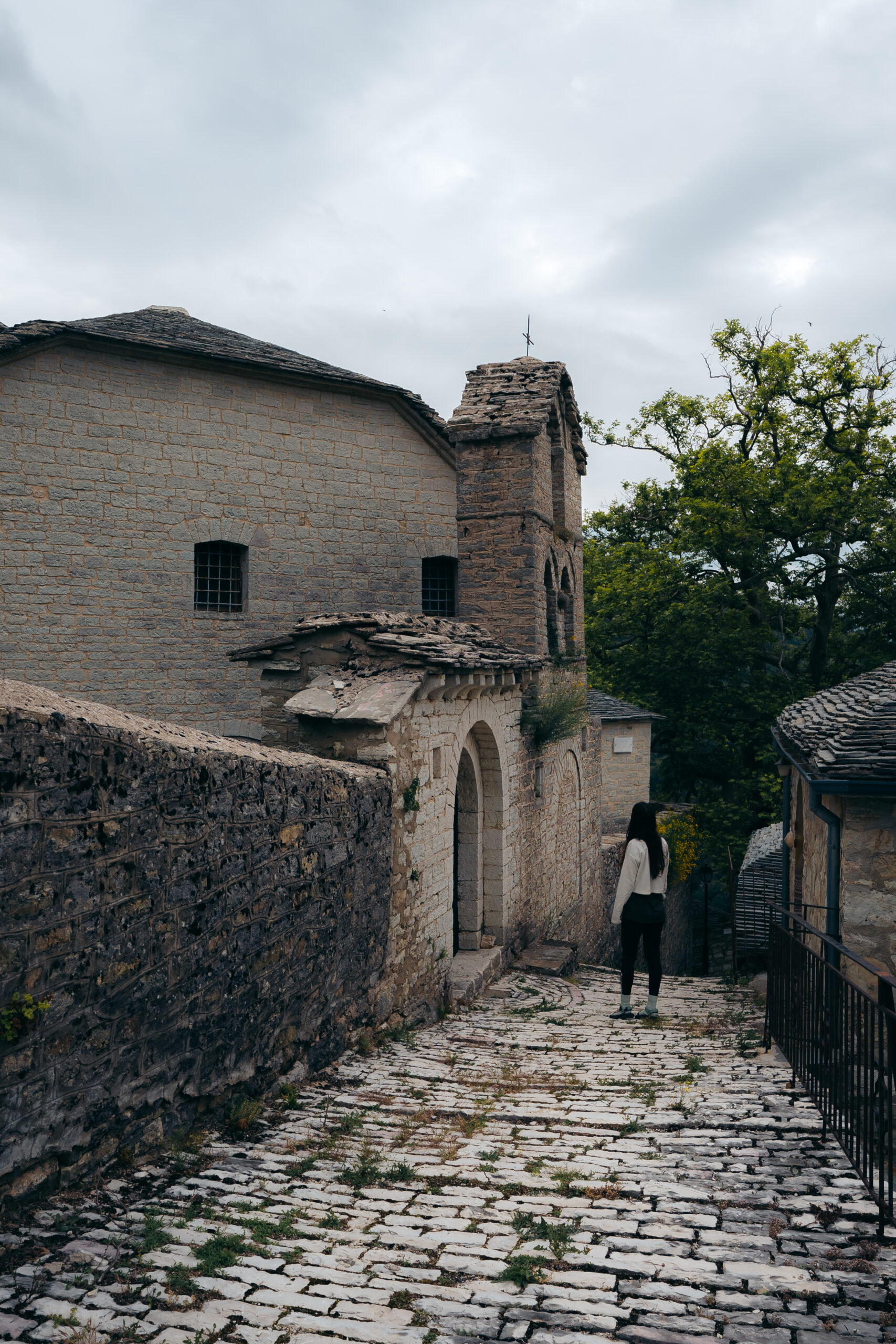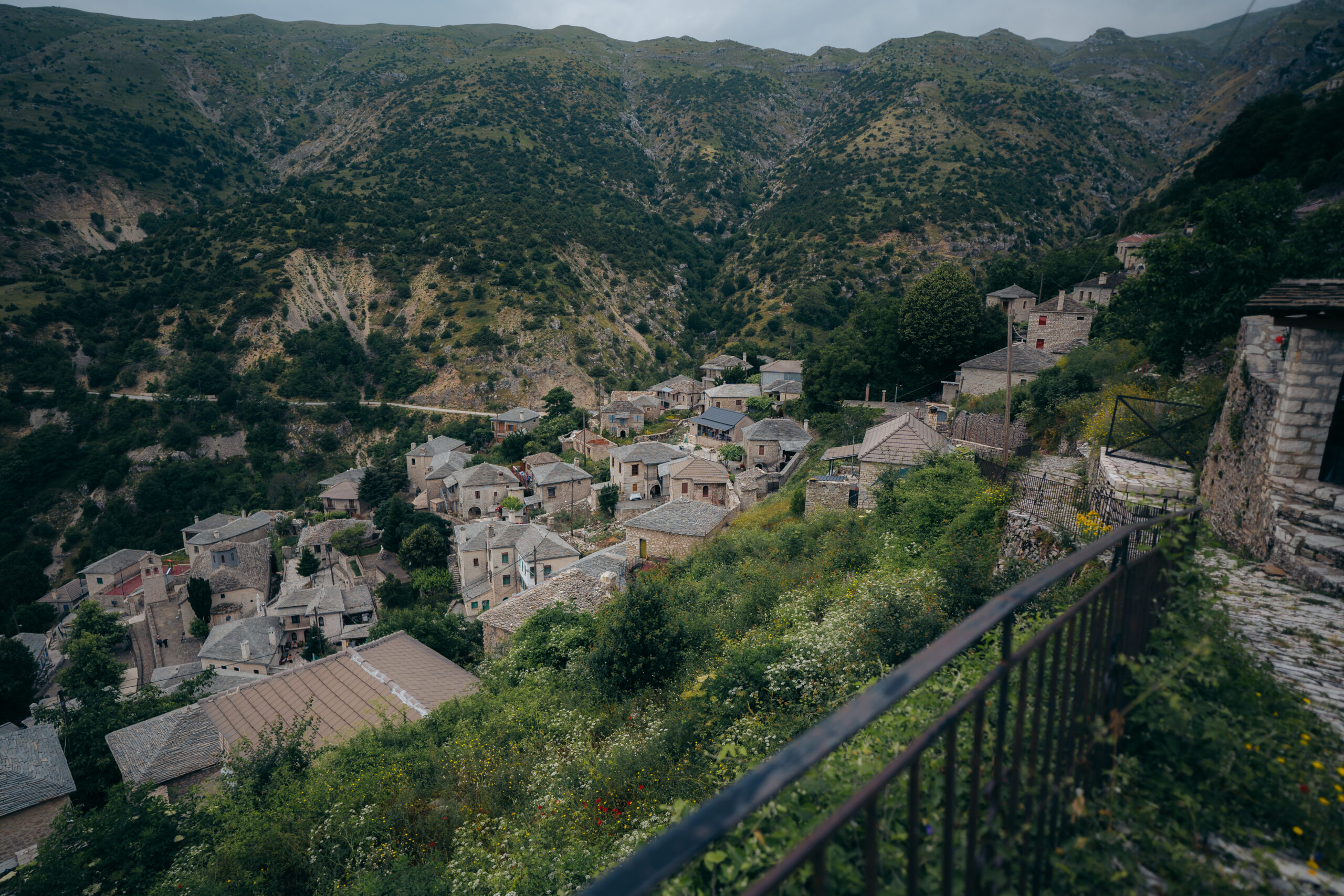 Ένα λιθόστρωτο «μπαλκόνι» με θέα στις χιονισμένες κορυφές είναι η πρώτη εικόνα που αιχμαλωτίζει η φωτογραφική μας κάμερα, και ύστερα τα κλικ γίνονται συνεχόμενα. Το χωριό είναι σχεδόν έρημο, με τους ελάχιστους κατοίκους να μας καλημερίζουν σαν να είμαστε συγχωριανοί. Διασχίζουμε τα 23 πέτρινα γεφυράκια, περνάμε μπροστά από τα στριμωγμένα σπίτια με τις στέγες από σχιστόλιθο, τα ανάγλυφα γράμματα και αριθμούς, και το έντονο γαλάζιο στα παράθυρα, μέχρι να φτάσουμε στην κεντρική πλατεία. Εκεί, θα κάνουμε ένα μικρό διάλειμμα, απολαμβάνοντας λίγα κομμάτια από την αγαπημένη σοκολάτα ΙΟΝ με Στέβια, γάλακτος και αμυγδάλου. Η ηπειρωτική αύρα ακολουθεί τα βήματά μας, άλλοτε υπό τους ήχους των τρεχούμενων νερών και άλλοτε μέσα από την παραδοσιακή αρχιτεκτονική. Στην πλατεία -την καρδιά του χωριού- κάτω από τους πλατάνους, 2-3 ντόπιοι κάθονται σε ένα γωνιακό τραπέζι με καρό τραπεζομάντηλο, απολαμβάνοντας το ουζάκι τους στο καφεπαντοπωλείο «Άκανθος», που λειτουργεί από το 1842.