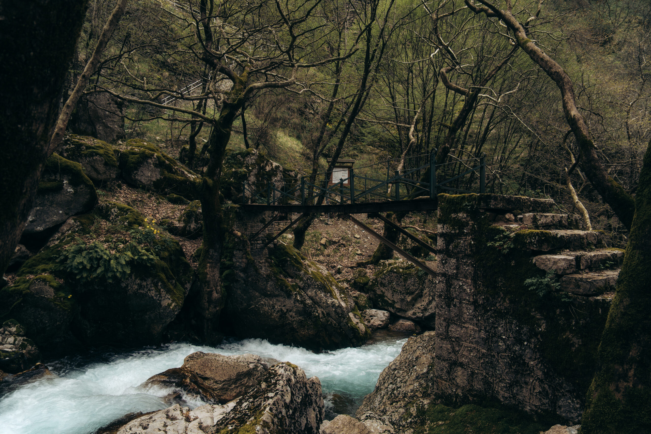 Μπροστά μας αρχίζει να εμφανίζεται το Συρράκο, γαντζωμένο στην πλαγιά του Όρους Λάκμος, μοιάζοντας να αιωρείται πάνω από τη χαράδρα. Στη βάση του, τρεχούμενα νερά ξεπηδούν από τα βράχια σε διάφορα σημεία και κυλούν σαν καταρράκτες, μαγεύοντάς μας με το θέαμά τους και αφήνοντάς μας συντριπτικά εκτεθειμένους στην ομορφιά αυτού του τόπου. Συνεχίζουμε, διασχίζοντας το μονοπάτι με τα κιγκλιδώματα, φτάνοντας στο βάθος του φαραγγιού και καταλήγοντας πάνω από τον Καλαρρύτικο ποταμό, όπου συναντούμε το μεταλλικό γεφυράκι. Από το σημείο εκείνο ξεκινά το ανηφορικό τμήμα της διαδρομής – πιο ήπιο από το προηγούμενο- και σύντομα θα φτάσουμε στην είσοδο του Συρράκου.