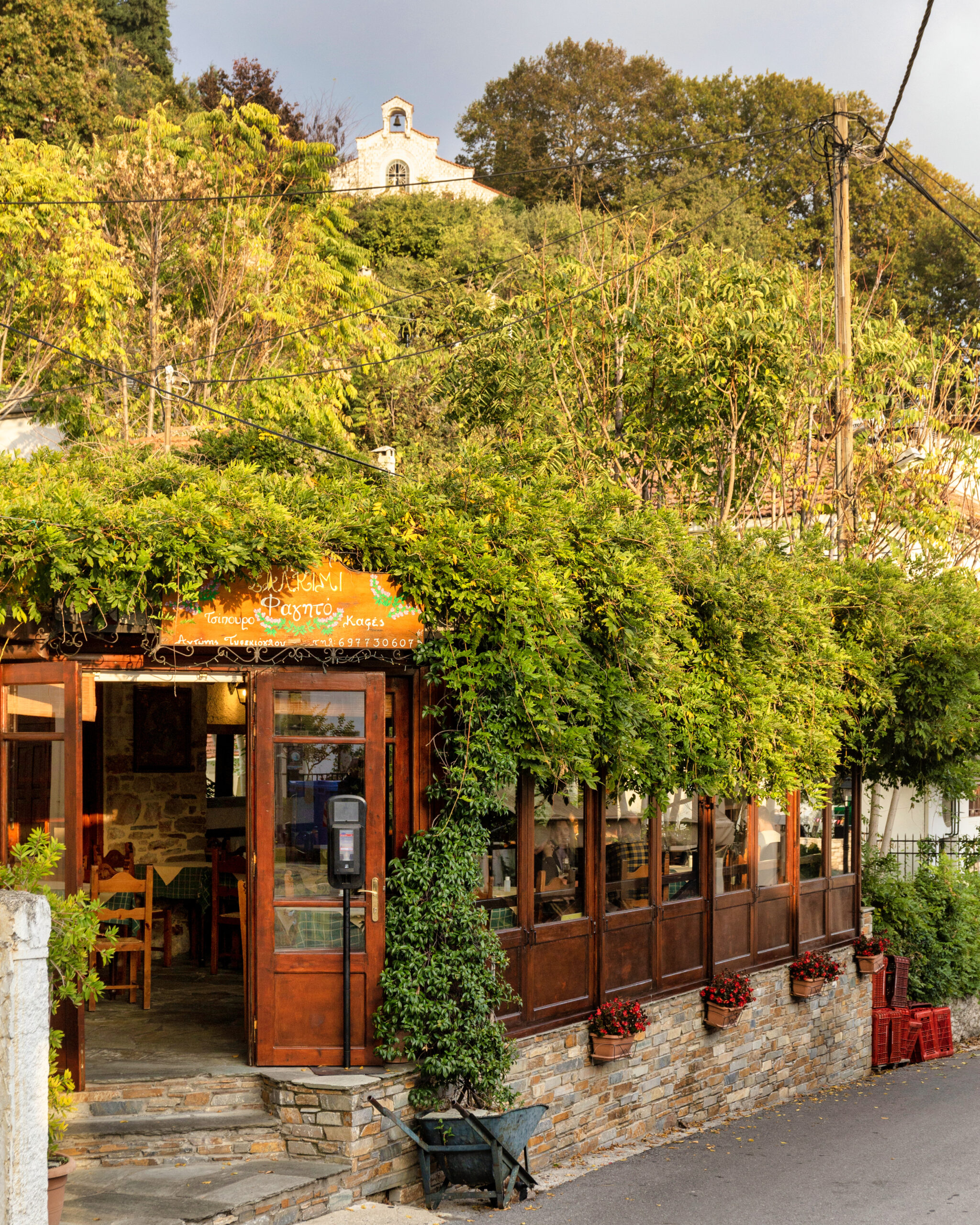 Λίγο αργότερα, η κυρία Νίκη μας υποδέχεται στην ταβέρνα της. Στο μικρό, ανθισμένο μπαλκόνι της ταβέρνας «Μεϊντάνι» (ή, όπως τη λένε όλοι εδώ, «της Νίκης») η θέα φτάνει ως το Αιγαίο, ενώ μέσα, η μυρωδιά του φρεσκοψημένου ψωμιού σε κάνει να νιώθεις ότι βρίσκεσαι σε πηλιορείτικο σπίτι. Το τραπέζι γεμίζει με ριγανοκεφτέδες και φτεροκεφτέδες από βλαστούς φτέρης, χόρτα με αυγά τηγανητά, ντολμαδάκια με κιμά, κολοκυθοανθούς γεμιστούς με φέτα και, φυσικά, τις πίτες της. Στα κυρίως, η κυρία Νίκη μαγειρεύει όπως παλιά: γίδα κοκκινιστή, κατσικάκι καπαμά, κλέφτικο με τρία είδη κρέατος, τράγο στη λαδόκολλα και τραχανά με σπιτικό λουκάνικο. Διεύθυνση: Μεϊντάνι (Η ταβέρνα της Νίκης), Τηλ: 2426 022626