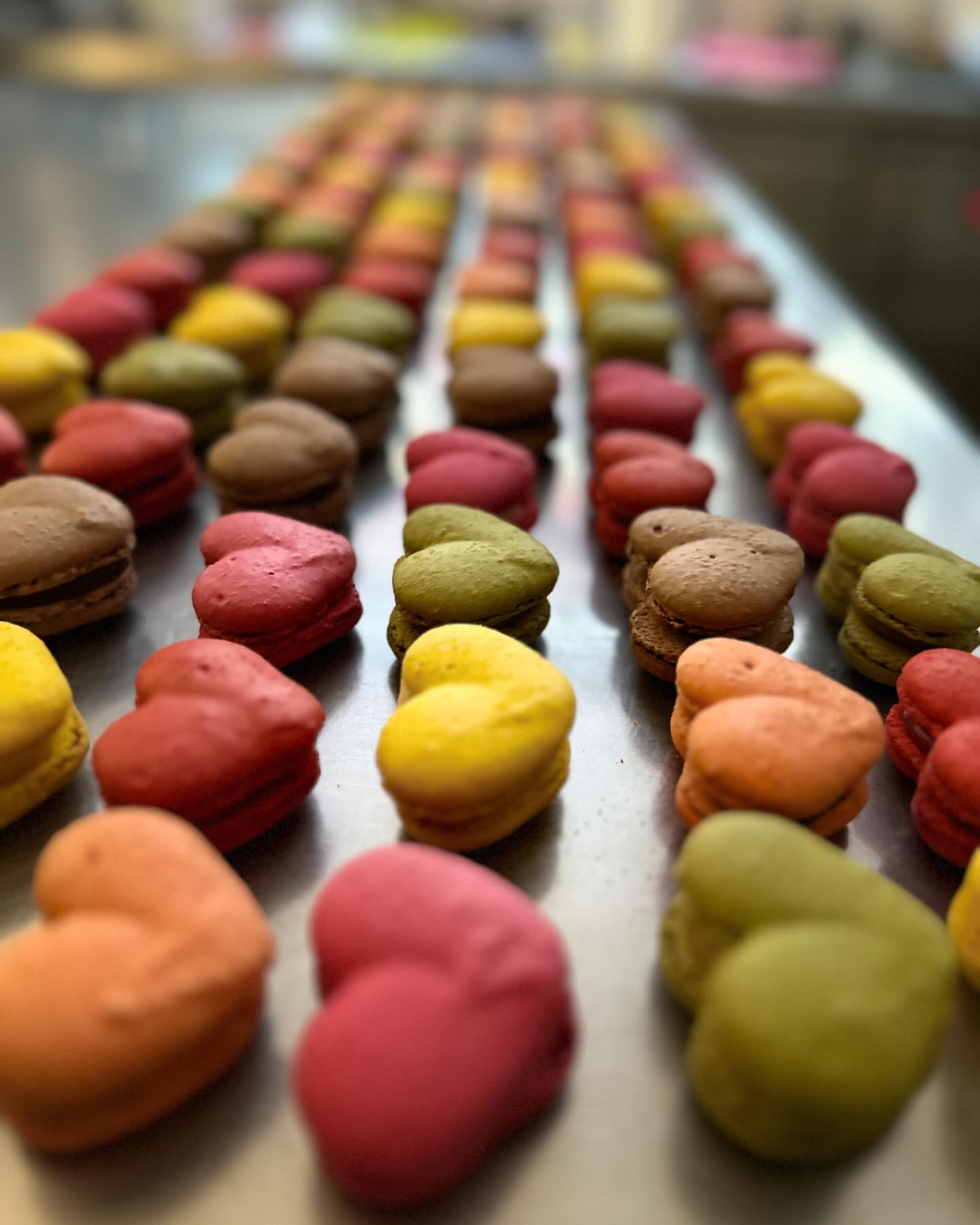 Όσο για τα αέρινα μακαρόν, ανάμεσα σε γεύσεις όπως η βραβευμένη Συκομαΐδα, το Λαδολέμονο ή οι καινούργιες Tonka με βύσσινο και Banana Foster, απλώς παραδιδόμασταν χωρίς αντίσταση, αδύναμοι να καταλήξουμε στην αγαπημένη μας.