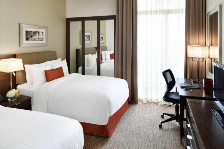 Δέκα λεπτά με το αυτοκίνητο από τον Kingdom Tower, στην οικονομική καρδιά του Ριάντ, το Marriott Executive Apartments Riyadh διαθέτει ευρύχωρα και σύγχρονα δωμάτια-διαμερίσματα, εξοπλισμένα με όλες τις ανέσεις. Περιλαμβάνουν πλήρως εξοπλισμένη κουζίνα με ψυγείο, φούρνο και πλυντήριο πιάτων, καθώς και ιδιωτικό μπάνιο με πλυντήριο και στεγνωτήριο ρούχων. Στις παροχές του ξενοδοχείου περιλαμβάνονται πισίνα, γυμναστήριο και γήπεδο σκουός. Το εστιατόριο Quick Bite προσφέρει πρωινό, μεσημεριανό και δείπνο, και λειτουργεί όλο το 24ωρο.