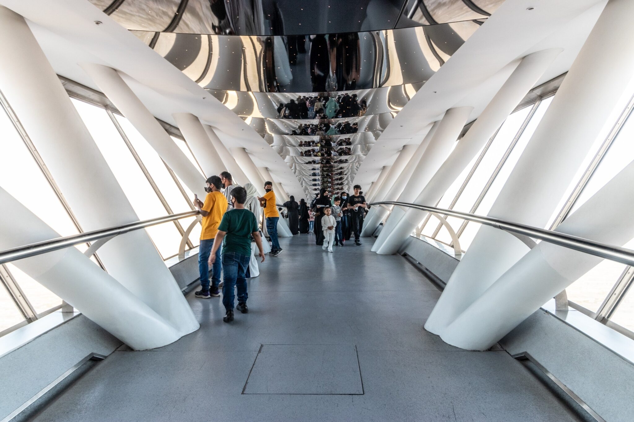 Από το ύψος των 300 μέτρων, μπορείτε να απολαύσετε τη θέα του Ριάντ που απλώνεται κάτω από τα πόδια σας: δρόμοι και λεωφόροι, έρημοι και ορεινοί όγκοι, καθώς και μια πρωτεύουσα που αναπτύσσεται με απίστευτους ρυθμούς, μοιάζοντας διαφορετική κάθε φορά που την επισκέπτεται κανείς.