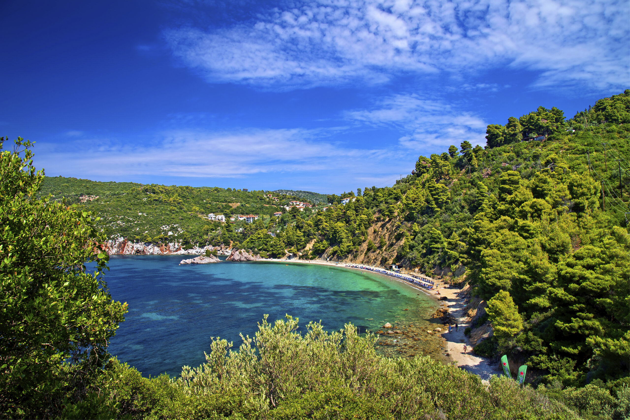 Η Σκόπελος είναι ένα από τα πιο καταπράσινα νησιά του Αιγαίου, με γνήσια νησιώτικη αύρα και πεύκα που φτάνουν ως τη θάλασσα, σχηματίζοντας εικόνες σπάνιας ομορφιάς. Ανάμεσα στις πιο γνωστές παραλίες της ξεχωρίζουν ο Στάφυλος, με τα ήρεμα νερά και τη λεπτή χρυσαφένια άμμο, μόλις λίγα λεπτά από τη Χώρα, και η Μηλιά, που θεωρείται η ομορφότερη του νησιού. Η Μηλιά είναι ένας μακρύς, αμφιθεατρικός κόλπος, με καταγάλανα νερά, πυκνή βλάστηση και χαρακτηριστικούς βράχους που βυθίζονται στο νερό, οριοθετώντας το ανατολικό και το δυτικό τμήμα της.