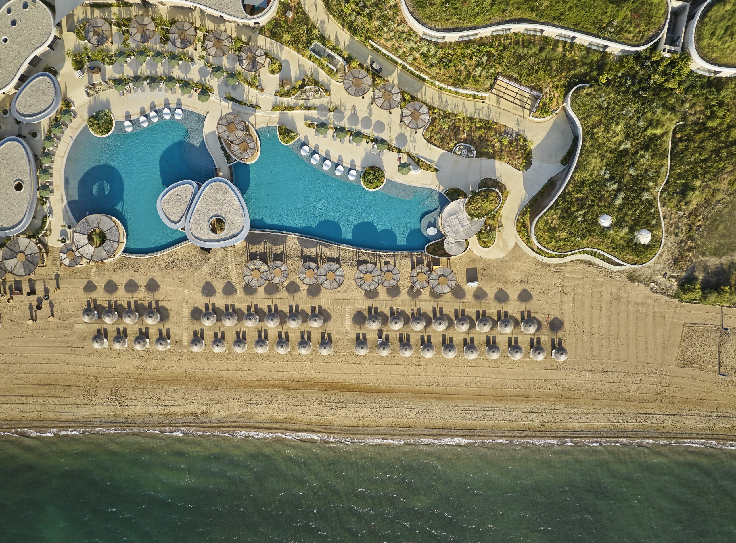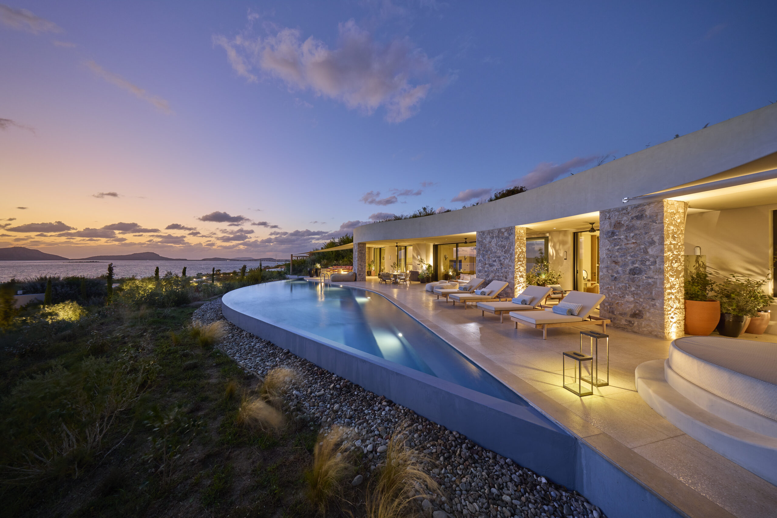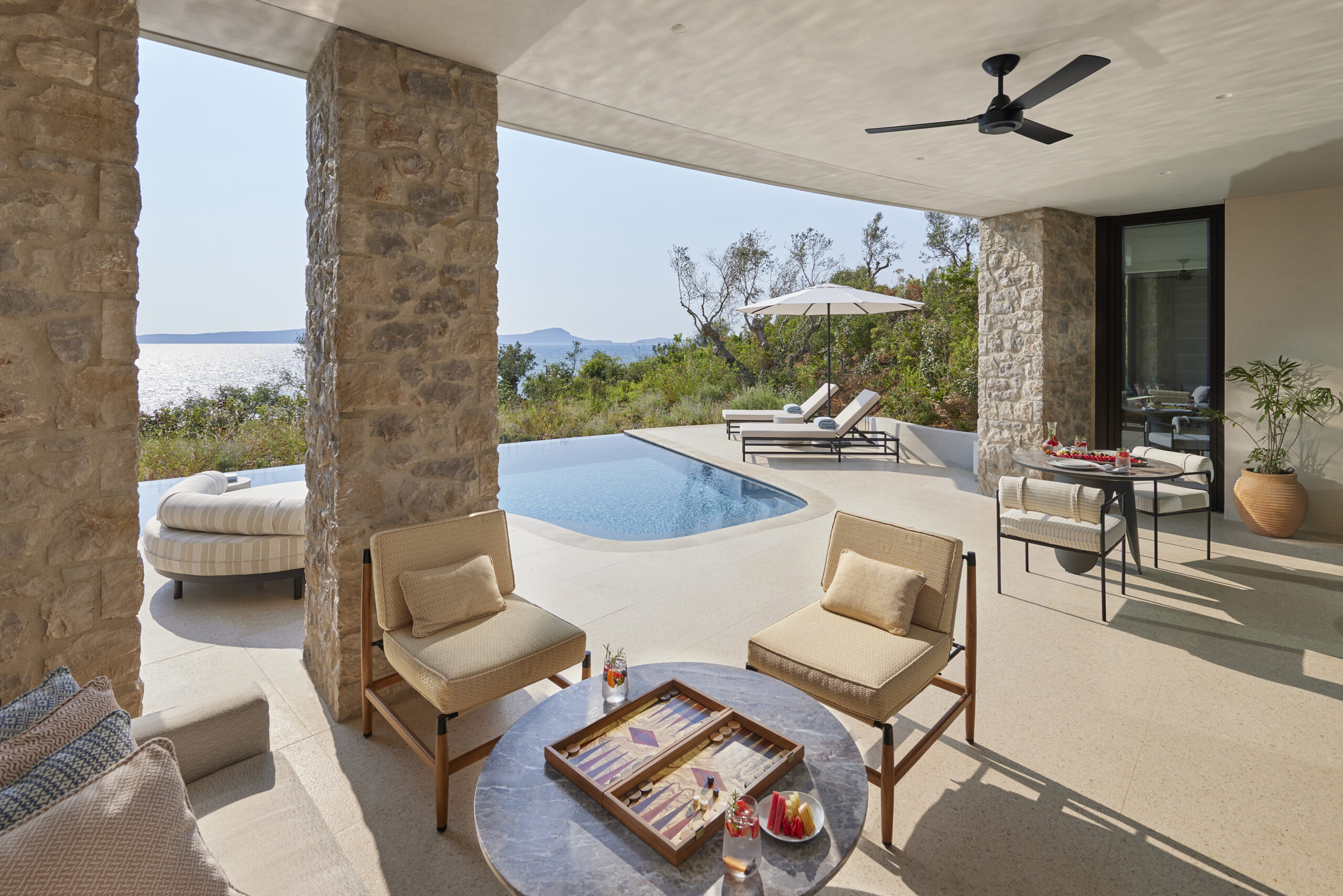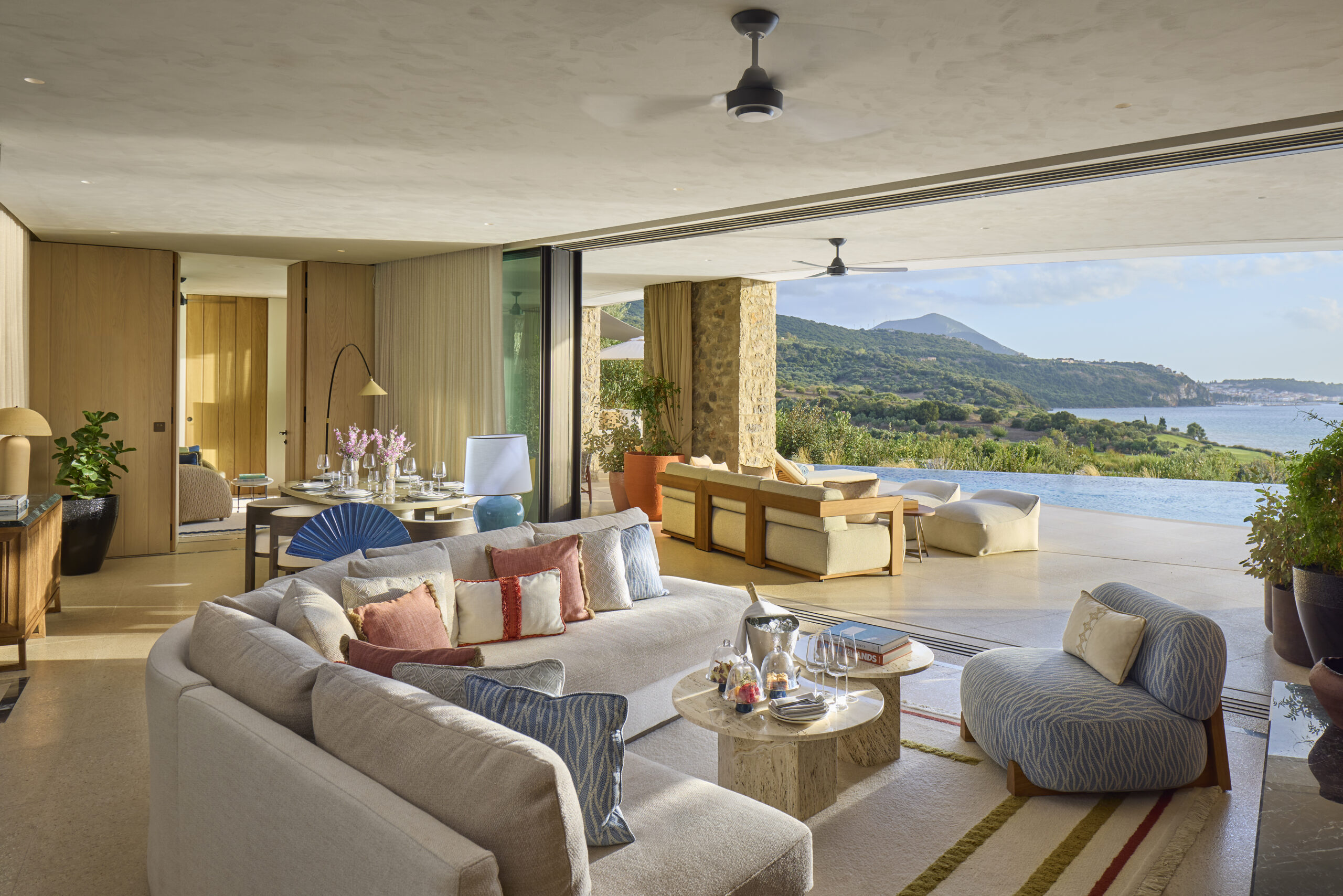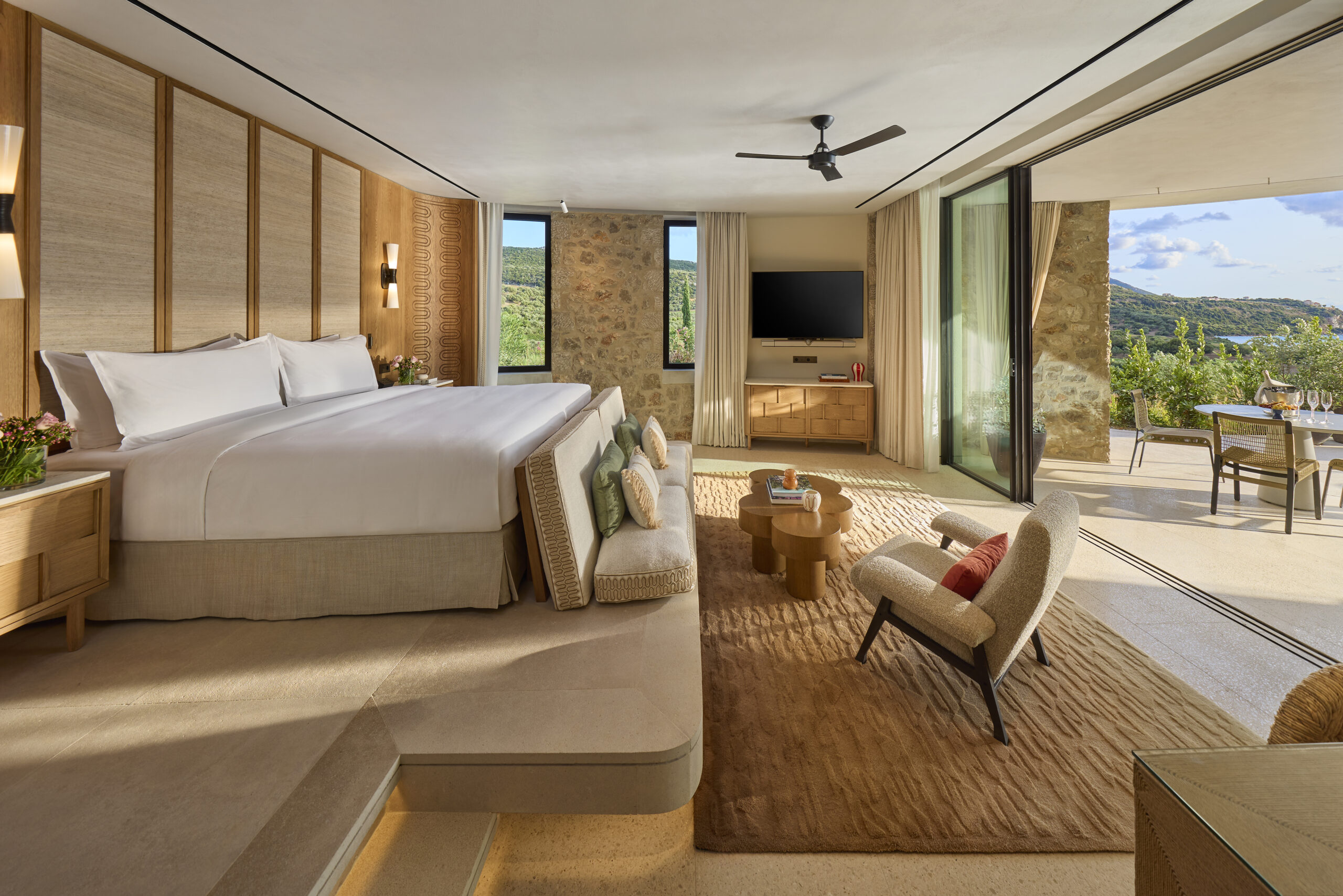 Το resort-προορισμός, με τις 99 σουίτες και βίλες του να εναρμονίζονται απόλυτα με το φυσικό τοπίο, προσκαλεί τους επισκέπτες του να γίνουν μέρος του τόπου που το περιβάλλει. Ο σχεδιασμός του αντλεί έμπνευση από την παραδοσιακή αρχιτεκτονική της Μεσσηνίας, ενώ οι εσωτερικοί του χώροι αποτυπώνουν τη σύγχρονη ελληνική αισθητική μέσα από υλικά όπως το ξύλο ελιάς και το μάρμαρο.