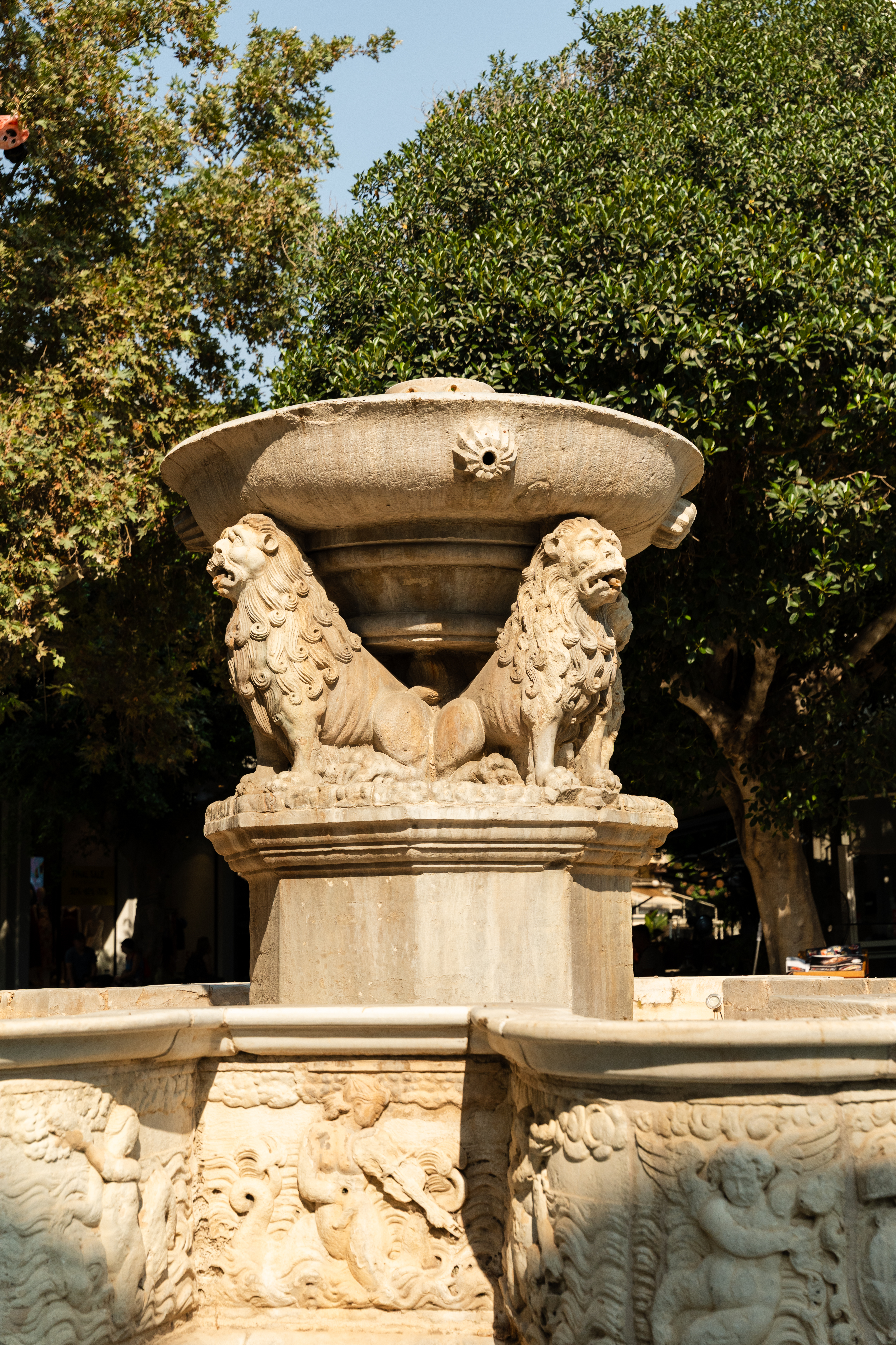 Σπουδαίο Ενετικό μνημείο και η Λότζια, κτίριο με περίτεχνη διακόσμηση σε κεντρικό σημείο της πόλης. Αποτελούσε το χώρο συγκέντρωσης και συσκέψεων των ευγενών Ενετών. Λειτουργούσε ήδη από τον 14ο αιώνα, αλλά έλαβε τη σημερινή μορφή του τον 17ο αιώνα. Το κτίριο είναι σήμερα αποκατεστημένο και στεγάζει υπηρεσίες του Δήμου Ηρακλείου. Λίγα μέτρα πιο κάτω και η χαρακτηριστική Κρήνη Μοροζίνι, η οποία κατασκευάστηκε στο πλαίσιο εκτεταμένου έργου υδροδότησης υπό την επίβλεψη του Ενετού Φραγκίσκου Μοροζίνι τον 17ο αιώνα. Το έργο αποσκοπούσε στην αντιμετώπιση του προβλήματος λειψυδρίας του Ηρακλείου και μετέφερε νερό από πηγές του όρους Γιούχτα. Η Κρήνη με την ιδιαίτερη διακόσμηση αποτελεί έως σήμερα χαρακτηριστικό μνημείο του Ηρακλείου. Είναι γνωστή, επίσης, ως Κρήνη των Λεόντων λόγω των τεσσάρων αξονικά τοποθετημένων λεόντων από το στόμα των οποίων ρέει το νερό.
