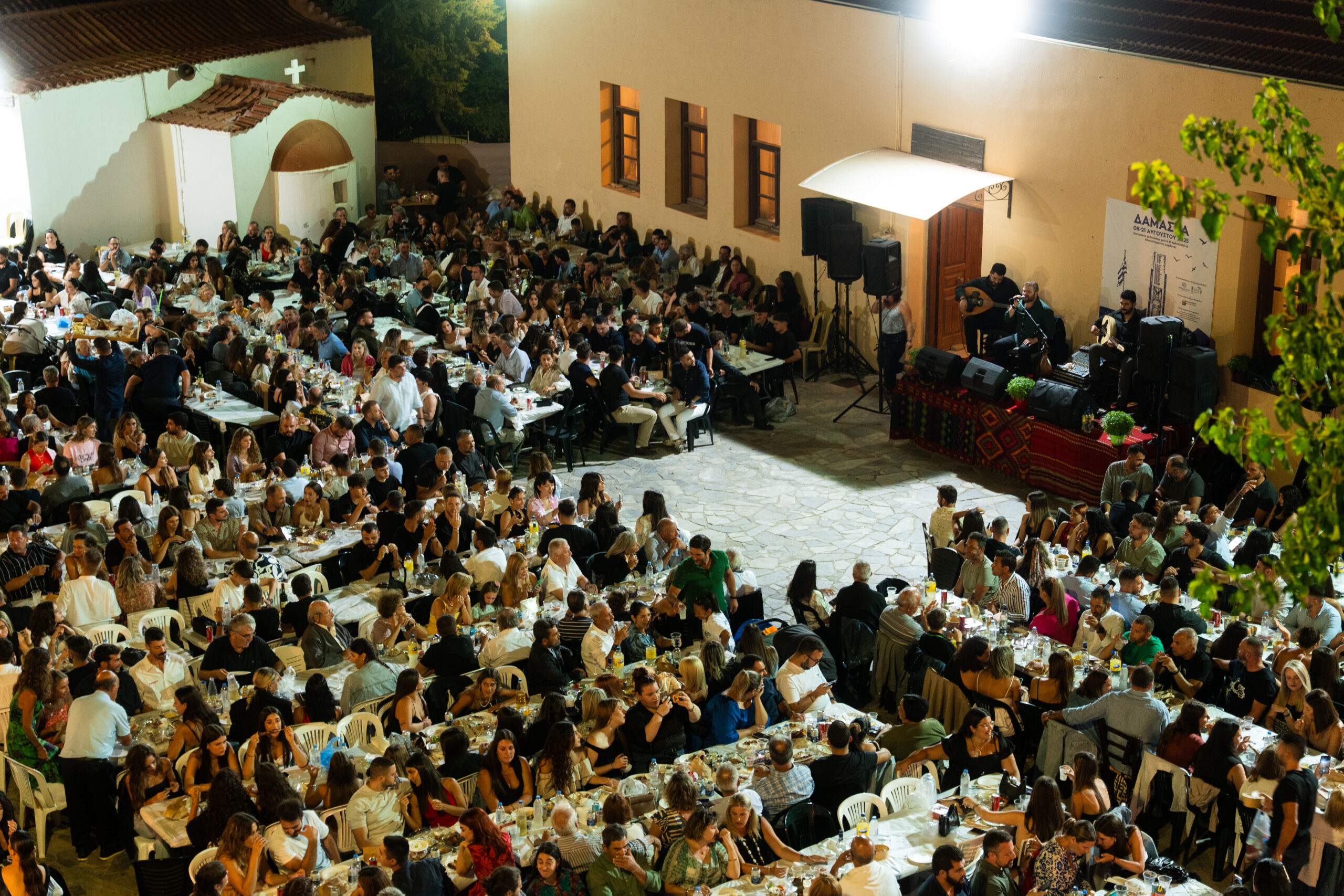 Ανάλογο κλίμα ευθυμίας και στο επόμενο γλέντι στο οποίο βρεθήκαμε στο χωριό Δαμάστα του Δήμου Μαλεβιζίου, δυτικά του Ηρακλείου. Με τον Γρηγόρη Σαμόλη το γλέντι του Πολιτιστικού Συλλόγου Δαμάστας στο πλαίσιο επετειακών εκδηλώσεων για τα 81 χρόνια από το Ολοκαύτωμα του χωριού. Όλοι αντάμα σε έναν κυκλικό χορό με κινήσεις αρμονικές και ρυθμικούς κυματισμούς. Ιδιαίτερη ήταν η στιγμή, όταν ακούστηκε ο στίχος «Φέρετε τσι βασιλικούς» και πελώρια πήλινα κιούπια με υπερμεγέθεις βασιλικούς μεταφέρθηκαν προς τη σκηνή. Είναι -μας είπαν- απαραίτητο στοιχείο στο Κρητικό γλέντι ο βασιλικός, τα κλωναράκια του οποίου προσφέρει ο άντρας στη γυναίκα και τοποθετούνται ως στολίδι στο αυτί των χορευτών. Με την ευχή του Γρηγόρη Σαμόλη «Πάντα με χαρά να σμίγουμε!» το γλέντι συνεχίστηκε έως και τις πρωινές ώρες.