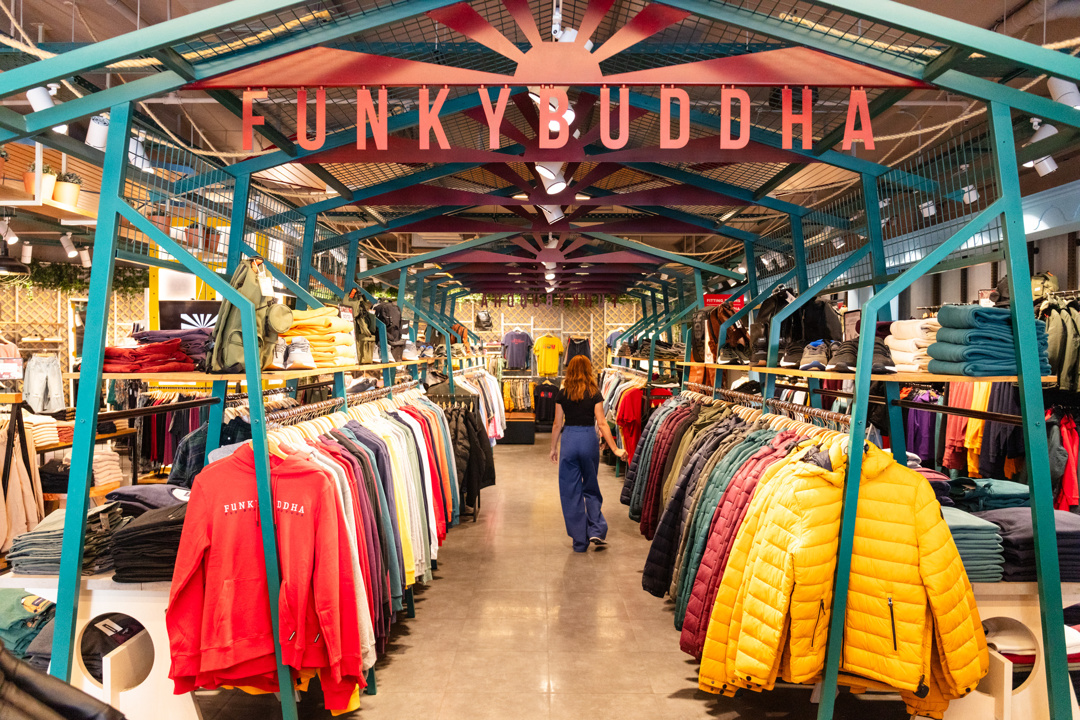 Mία στάση στα Funky Buddha για ένα buggy τζιν παντελόνι και μία ριχτή φούτερ ζακέτα σχεδόν επιβάλλεται. Ή μία βόλτα στις μεγάλες μπουτίκ αθλητικών ειδών Adidas, Nike, Puma, New Balance, Vans και Champion προς αναζήτηση των τέλειων sneakers που καλύπτουν κάθε γούστο και ανάγκη. Ή για να βρείτε το κολάν και το αθλητικό μπουστάκι που εσείς ονειρεύεστε για ακόμα μεγαλύτερη άνεση στο επόμενο μάθημα pilates.