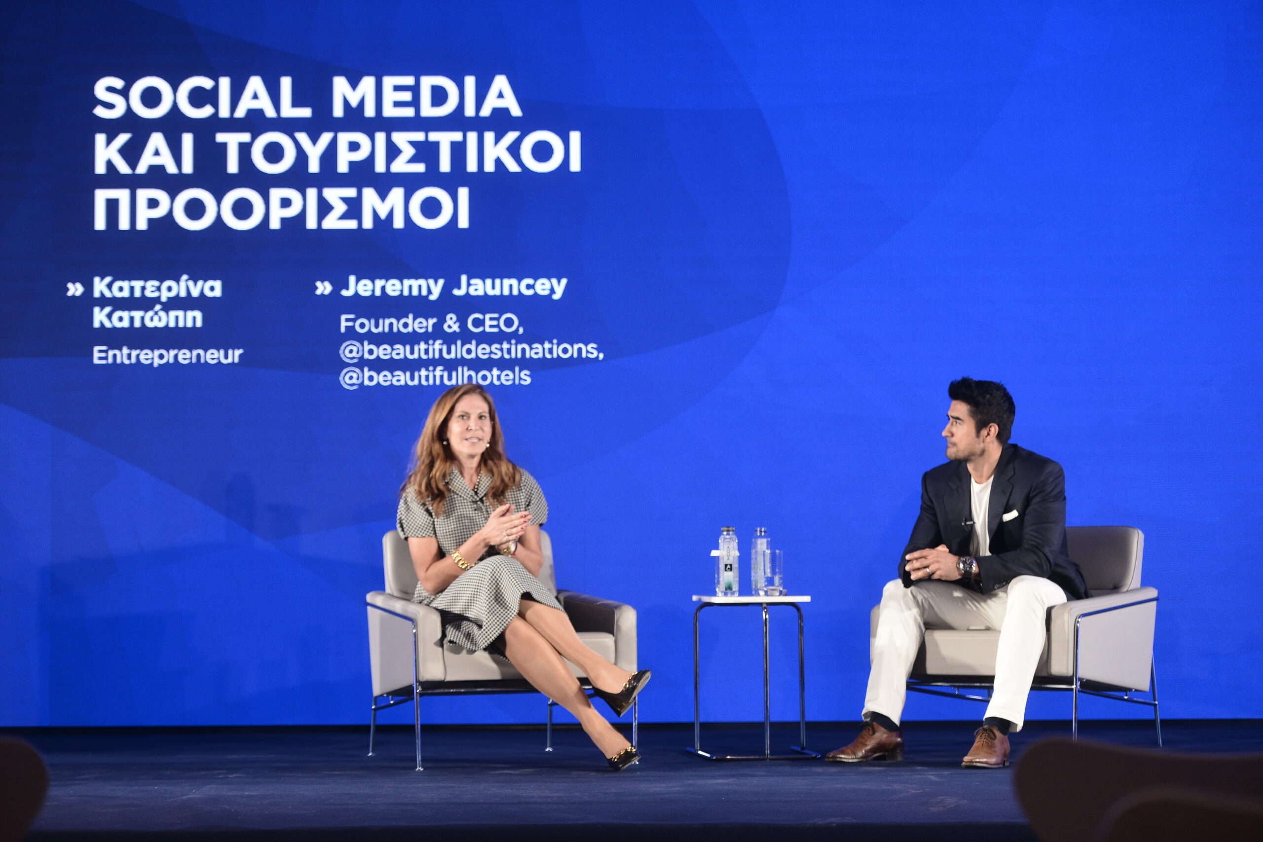 Η entrepreneur Κατερίνα Κατώπη συμμετείχε μαζί με τον Jeremy Jauncey, ιδρυτή και CEO των Beautiful Destinations και Beautiful Ηotels συνομίλησαν στο μεγάλο συνέδριο του Travel.gr με θέμα «social media και τουριστικοί προορισμοί».