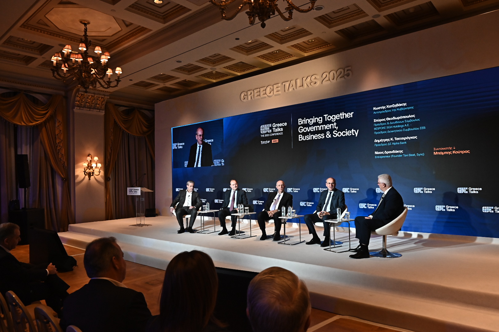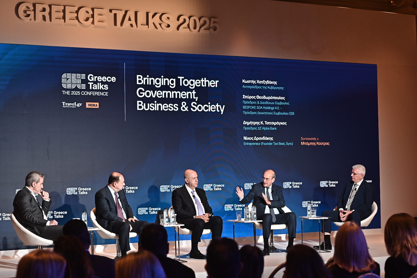 Στο πάνελ «Bringing Together Government, Business & Society» στο συνέδριο Greece Talks που διοργανώνουν το Travel.gr και το Πρώτο Θέμα, κορυφαίοι εκπρόσωποι της κυβέρνησης, της επιχειρηματικότητας και των χρηματοπιστωτικών θεσμών συναντήθηκαν για να χαρτογραφήσουν τις μεγάλες προκλήσεις και τις νέες ισορροπίες ανάμεσα στο κράτος, την αγορά και την κοινωνία.
