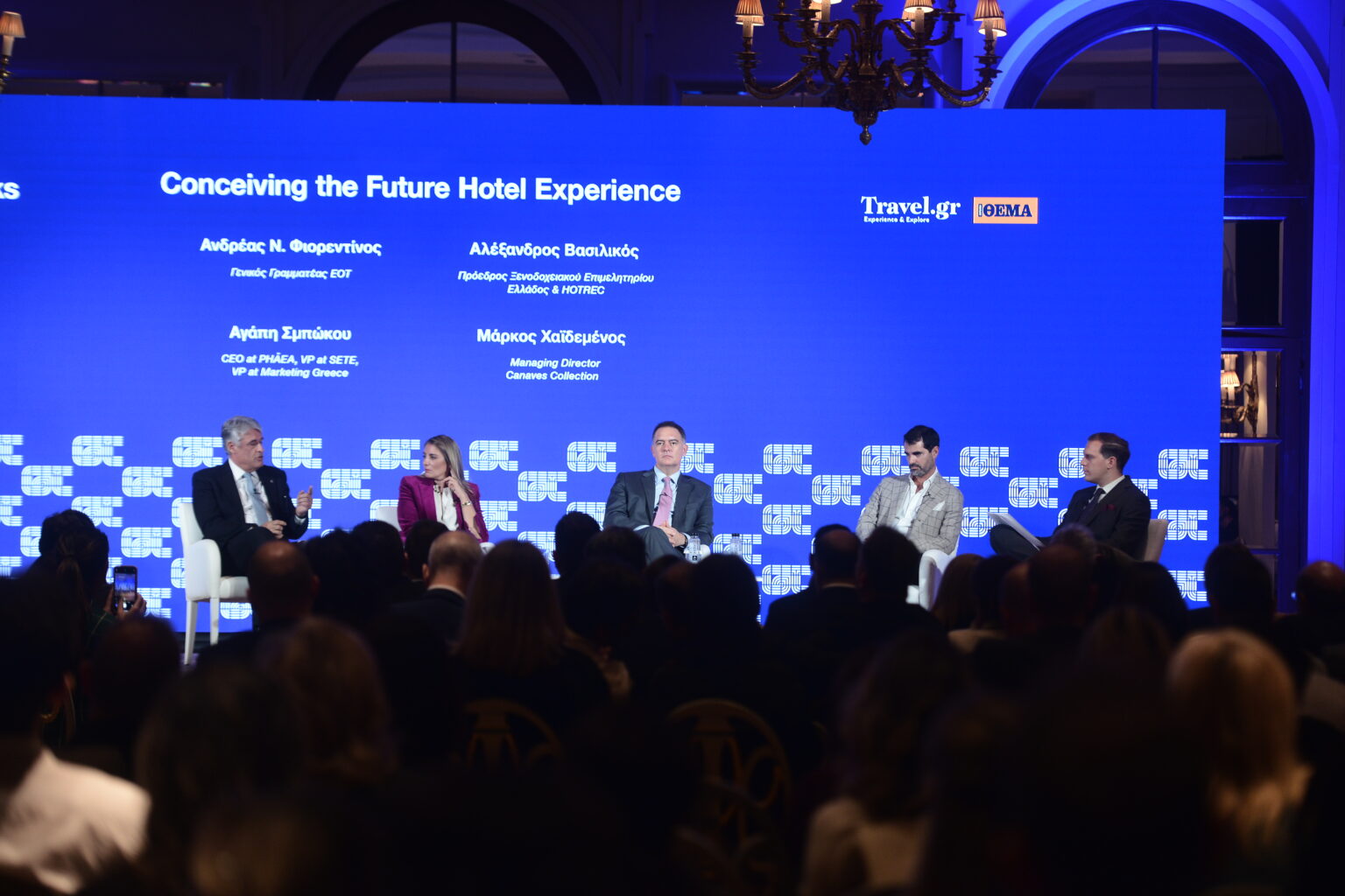 Conceiving the Future Hotel Experience: Ο Γενικός Γραμματέας ΕΟΤ, Ανδρέας Φιορεντίνος, ο Πρόεδρος Ξενοδοχειακού Επιμελητηρίου Ελλάδος και HOTREC, Αλέξανδρος Βασιλικός, η CEO at PHĀEA | VP at SETE | VP at Marketing Greece, Αγάπη Σμπώκου και ο Managing Director Canaves Collection, Μάρκος Χαϊδεμένος σε ένα ενδιαφέρον πάνελ για το μέλλον της Φιλοξενίας στο Greece Talks.