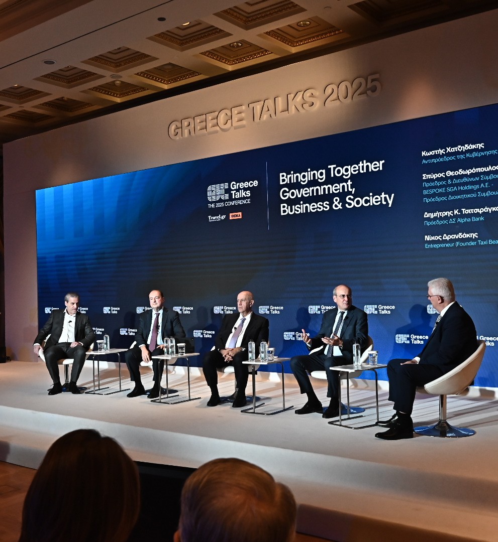 Στο πάνελ «Bringing Together Government, Business & Society», κορυφαίοι εκπρόσωποι της κυβέρνησης, της επιχειρηματικότητας και των χρηματοπιστωτικών θεσμών συναντήθηκαν για να χαρτογραφήσουν τις μεγάλες προκλήσεις και τις νέες ισορροπίες ανάμεσα στο κράτος, την αγορά και την κοινωνία. Ο Αντιπρόεδρος της Κυβέρνησης Κωστής Χατζηδάκης, ο Πρόεδρος του ΣΕΒ Σπύρος Θεοδωρόπουλος, ο Πρόεδρος του ΔΣ της Alpha Bank Δημήτρης Κ. Τσιτσιράγκος και ο επιχειρηματίας Νίκος Δρανδάκης συνομίλησαν – υπό τον συντονισμό του δημοσιογράφου Μπάμπη Κούτρα – για την παραγωγικότητα, την επιχειρηματική κουλτούρα, τον μετασχηματισμό της οικονομίας, την καινοτομία και τον ρόλο του κράτους στην επιτάχυνση κρίσιμων μεταρρυθμίσεων.