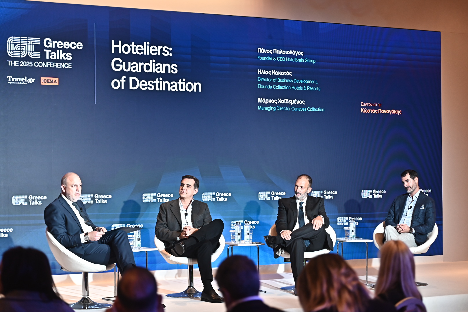 Οι ξενοδοχειακοί όμιλοι της χώρας έχουν πάψει προ πολλού να είναι απλοί πάροχοι φιλοξενίας. Στη σύγχρονη εποχή, όπου ο ταξιδιώτης αναζητά ταυτότητα, αφήγηση και ουσία, ο ξενοδόχος γίνεται ο άνθρωπος που ορίζει τη σχέση του επισκέπτη με τον τόπο. Στο πάνελ Hoteliers: Guardians of Destination του Greece Talks 2025, τρεις κορυφαίοι εκπρόσωποι της ελληνικής φιλοξενίας ανέβηκαν στη σκηνή για να μιλήσουν για τον ρόλο του ξενοδοχείου ως θεματοφύλακα προορισμού και ως πυλώνα βιώσιμης ανάπτυξης.