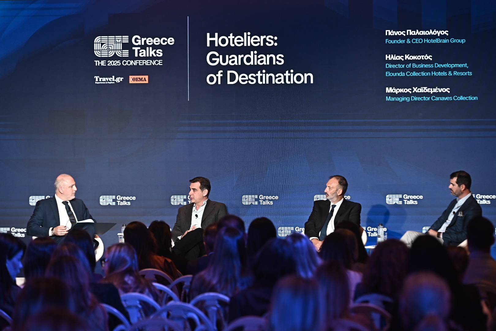 Στο πάνελ Hoteliers: Guardians of Destination του Greece Talks 2025, τρεις από τους σημαντικότερους εκπροσώπους της ελληνικής φιλοξενίας ανέλυσαν τον ρόλο του ξενοδοχείου ως φορέα ταυτότητας, βιωσιμότητας και τοπικής ανάπτυξης. Ο Πάνος Παλαιολόγος, Founder και CEO της HotelBrain Group, ο Ηλίας Κοκοτός, Director of Business Development της Elounda Collection Hotels & Resorts, και ο Μάρκος Χαϊδεμένος, Managing Director της Canaves Collection, συνομίλησαν για την ουσία της σύγχρονης φιλοξενίας. Τη συζήτηση συντόνισε ο Κώστας Παναγάκης, Founder και Principal της Travelworks.
