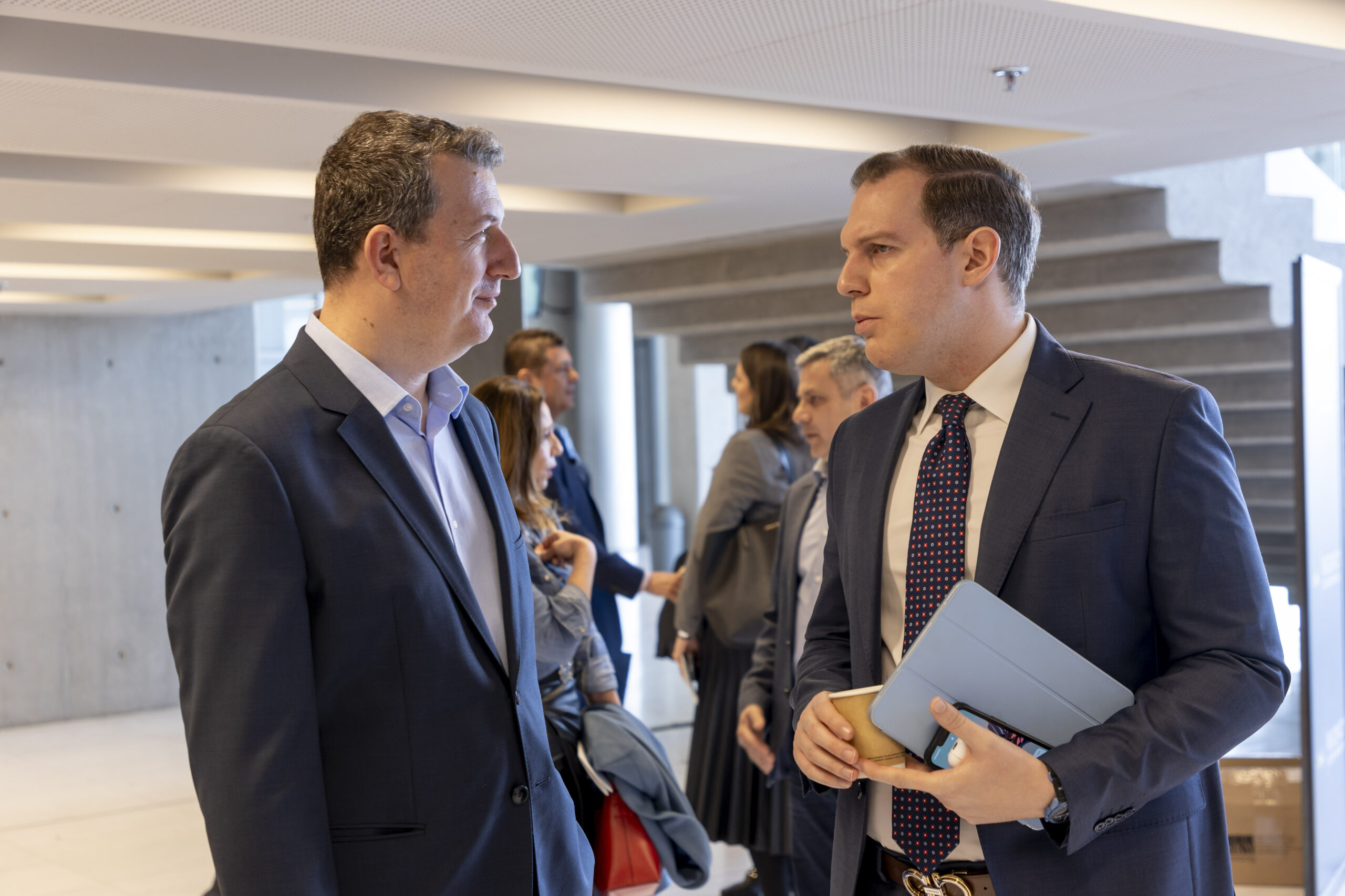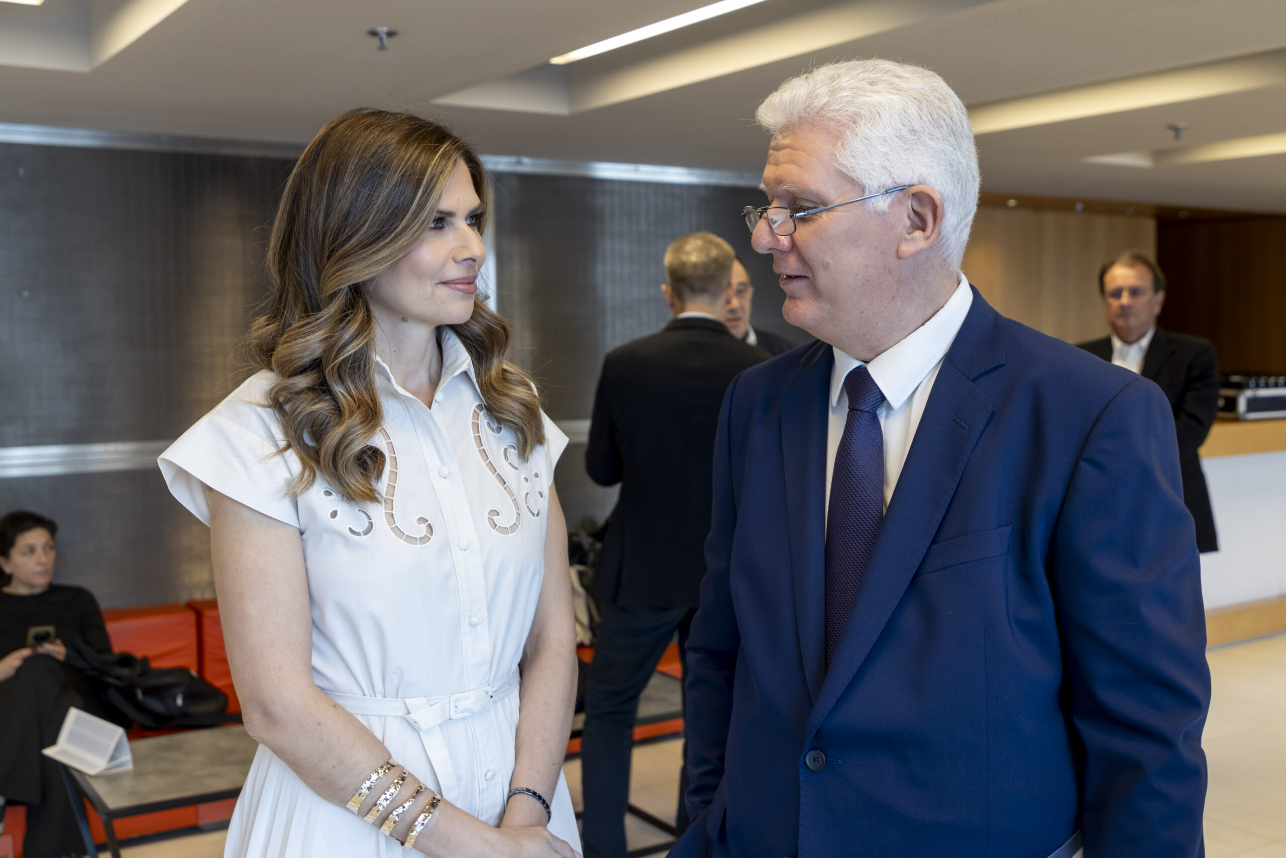 Από νωρίς, στον χώρο υποδοχής του Μεγάρου βρέθηκαν ο υπουργός Επικρατείας, κ. Άκης Σκέρτσος, η πρόεδρος του Συνδέσμου Βιομηχανιών Ελλάδος, κα Λουκία Σαράντη, και ο δήμαρχος Θεσσαλονίκης, κ. Στέλιος Αγγελούδης, ο οποίος, μάλιστα, παραχώρησε δηλώσεις στις τηλεοπτικές κάμερες.