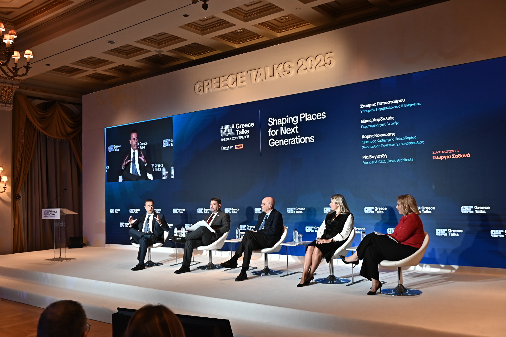 Η διαμόρφωση των τόπων όπου θα ζήσουν οι επόμενες γενιές είναι ζήτημα πολιτικής, οικονομίας, σχεδιασμού, κλιματικής αντοχής και πολιτισμικής ταυτότητας. Στο πάνελ Shaping places for next generations του Greece Talks 2025, τέσσερις άνθρωποι που επηρεάζουν άμεσα το μέλλον του ελληνικού χώρου: η πολιτεία, η περιφέρεια, η επιστημονική κοινότητα και η αρχιτεκτονική πράξη, συναντήθηκαν για να χαρτογραφήσουν τις προκλήσεις και τις αποφάσεις της επόμενης δεκαετίας.