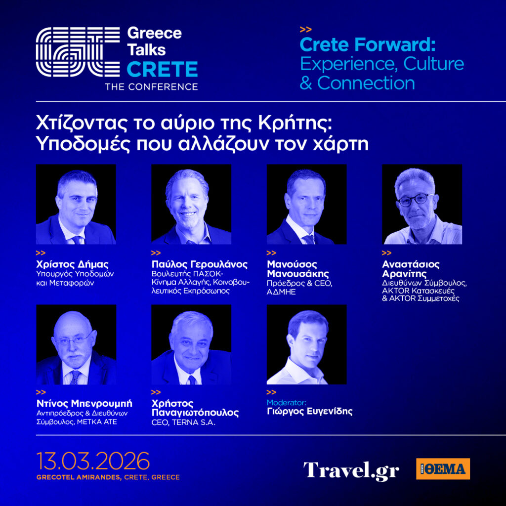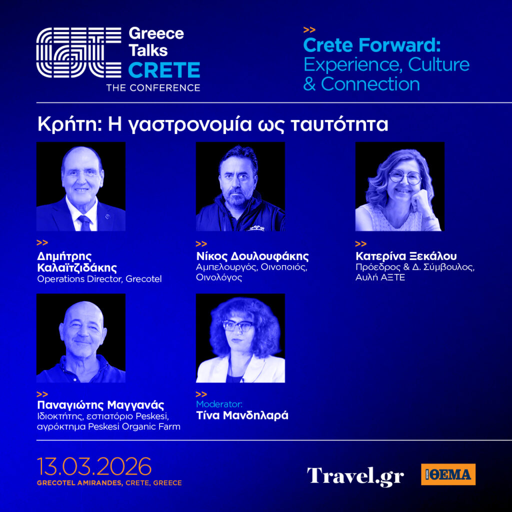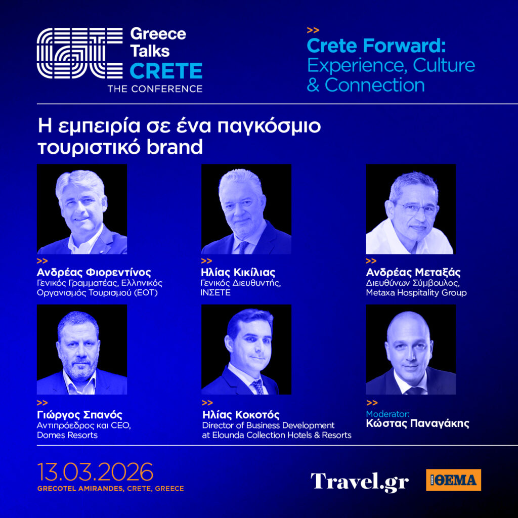 Η Κρήτη είναι ένας τόπος με ισχυρή οικονομία, η οποία εξελίσσεται με σταθερό ρυθμό εδώ και δεκαετίες. Αυτή τη στιγμή το νησί βρίσκεται στο επίκεντρο των εξελίξεων, καθώς σημαντικές επενδύσεις, νέες υποδομές, μεγάλα διεθνή ονόματα επαναπροσδιορίζουν τον ρόλο του στον ευρωπαϊκό ταξιδιωτικό χάρτη. Υπό αυτό το πρίσμα, το νησί μπαίνει στο επίκεντρο ενός ανοικτού διαλόγου μέσα από το συνέδριο του Travel.gr Greece Talks, Crete Forward: Experience, Culture & Connection, που θα πραγματοποιηθεί στις 13 Μαρτίου στο Grecotel Amirandes, στο Ηράκλειο της Κρήτης.