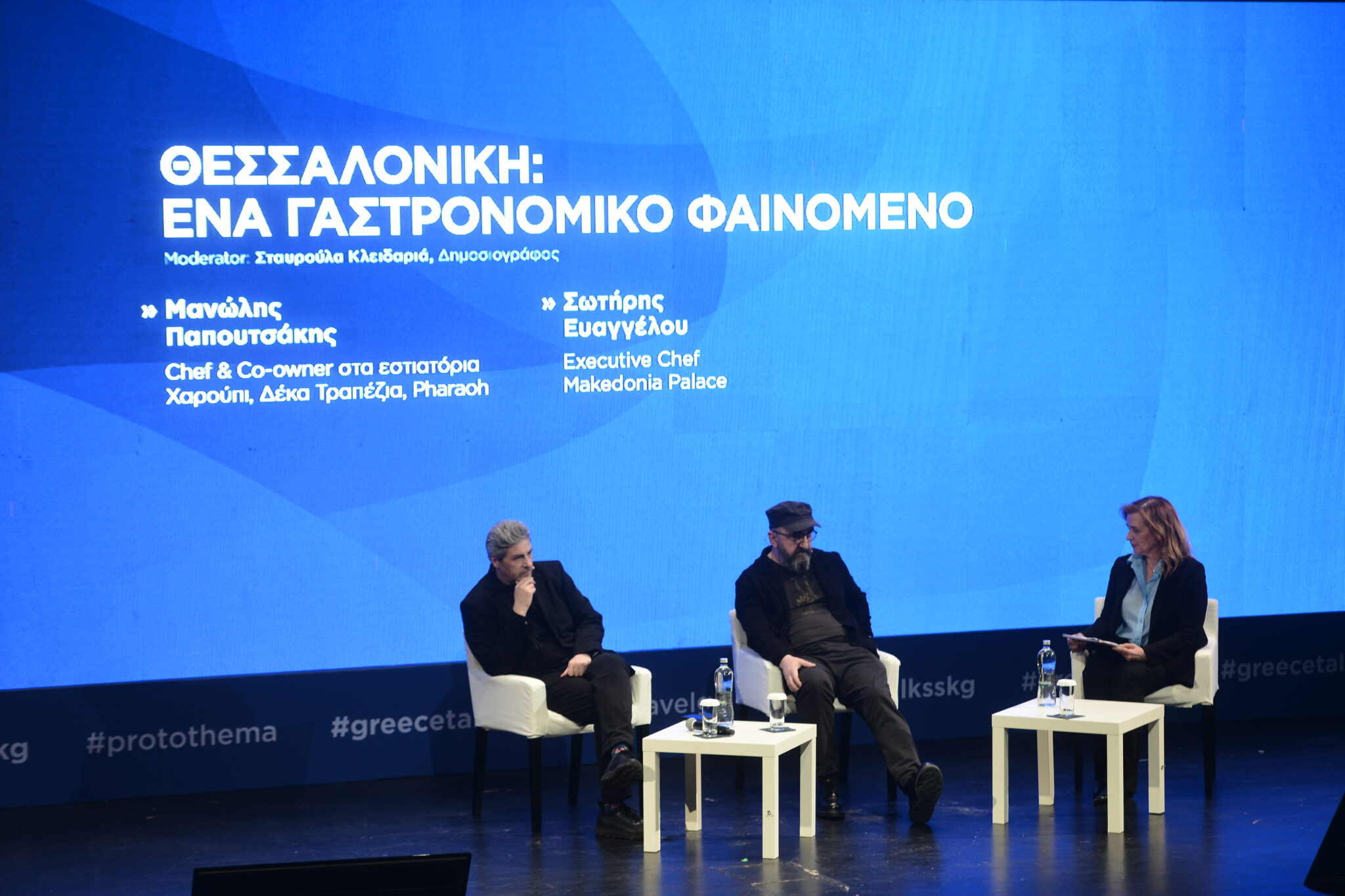 Την κοινή τους πεποίθηση ότι η Θεσσαλονίκη αποτελεί έναν ιδιαίτερο γαστρονομικό προορισμό μοιράστηκαν οι chef Μανώλης Παπουτσάκης και Σωτήρης Ευαγγέλου στο συνέδριο «Greece Talks_Thessaloniki: Η Θεσσαλονίκη στον διεθνή τουριστικό χάρτη», που διοργάνωσε στην πόλη το Travel.gr σε συνεργασία με το Πρώτο Θέμα στο Μέγαρο Μουσικής Θεσσαλονίκης, την Πέμπτη 14 Μαρτίου.
