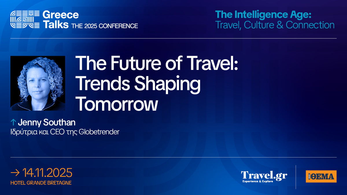 Το Travel.gr, το μεγαλύτερο ταξιδιωτικό site στην Ελλάδα, και το Πρώτο Θέμα διοργανώνουν την Παρασκευή 14 Νοεμβρίου στο ξενοδοχείο Μεγάλη Βρεταννία το 5ο συνέδριο Greece Talks με τίτλο «The Intelligence Age: Travel, Culture & Connection».