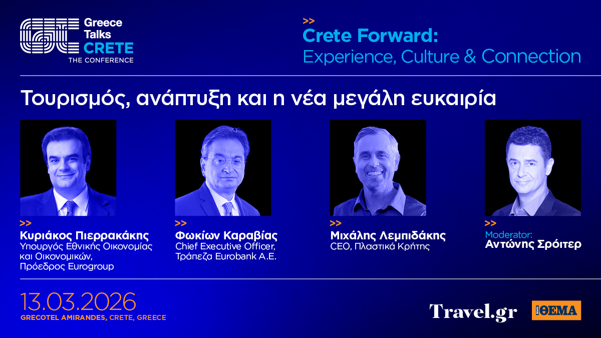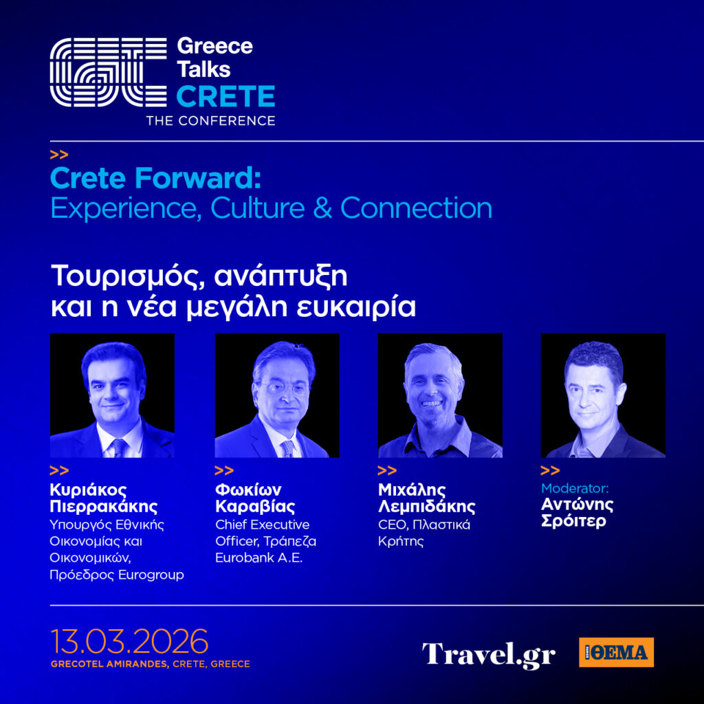 Σε αυτό το πλαίσιο, το Travel.gr, το Νο1 ταξιδιωτικό site της Ελλάδας, σε συνεργασία με την εφημερίδα Πρώτο Θέμα, διοργανώνει το συνέδριο Greece Talks, Crete Forward: Experience, Culture & Connection την Παρασκευή 13 Μαρτίου, στο Grecotel Amirandes στην Κρήτη.