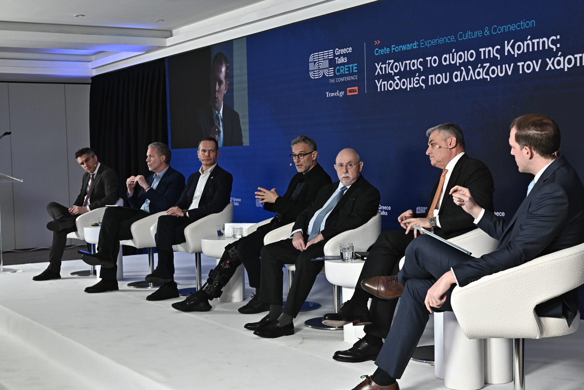 Στο πάνελ με τίτλο «Χτίζοντας το αύριο της Κρήτης: Υποδομές που αλλάζουν τον χάρτη» συμμετείχαν ο Υπουργός Υποδομών και Μεταφορών Χρίστος Δήμας, ο Βουλευτής ΠΑΣΟΚ-Κίνημα Αλλαγής και Κοινοβουλευτικός Εκπρόσωπος Παύλος Γερουλάνος, ο Πρόεδρος και CEO του ΑΔΜΗΕ Μανούσος Μανουσάκης, ο Διευθύνων Σύμβουλος των AKTOR ΚΑΤΑΣΚΕΥΕΣ και AKTOR Αναστάσιος Αρανίτης, ο Αντιπρόεδρος και Διευθύνων Σύμβουλος της METKA ATE Ντίνος Μπενρουμπή και ο CEO της TERNA S.A. Χρήστος Παναγιωτόπουλος. Τη συζήτηση συντόνισε ο δημοσιογράφος Γιώργος Ευγενίδης.