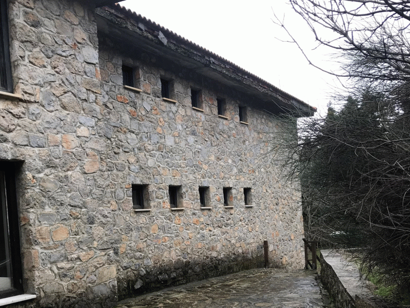 Το Ξενία έχει παραδοσιακή αρχιτεκτονική και είναι χτισμένο σε δασώδης πλαγιά προσφέροντας εντυπωσιακή θέα. Βρίσκεται σε οικόπεδο 8,6 στρεμμάτων και έχει συνολικό εμβαδόν 1.350 τ.μ. και δυναμικότητα 34 κλινών. Βρίσκεται σε πολύ καλή εξωτερική κατάσταση, καθώς έχει οικοδομηθεί από υλικά που ανθίστανται στο χρόνο, όπως πέτρα και πλάκες Καρύστου.