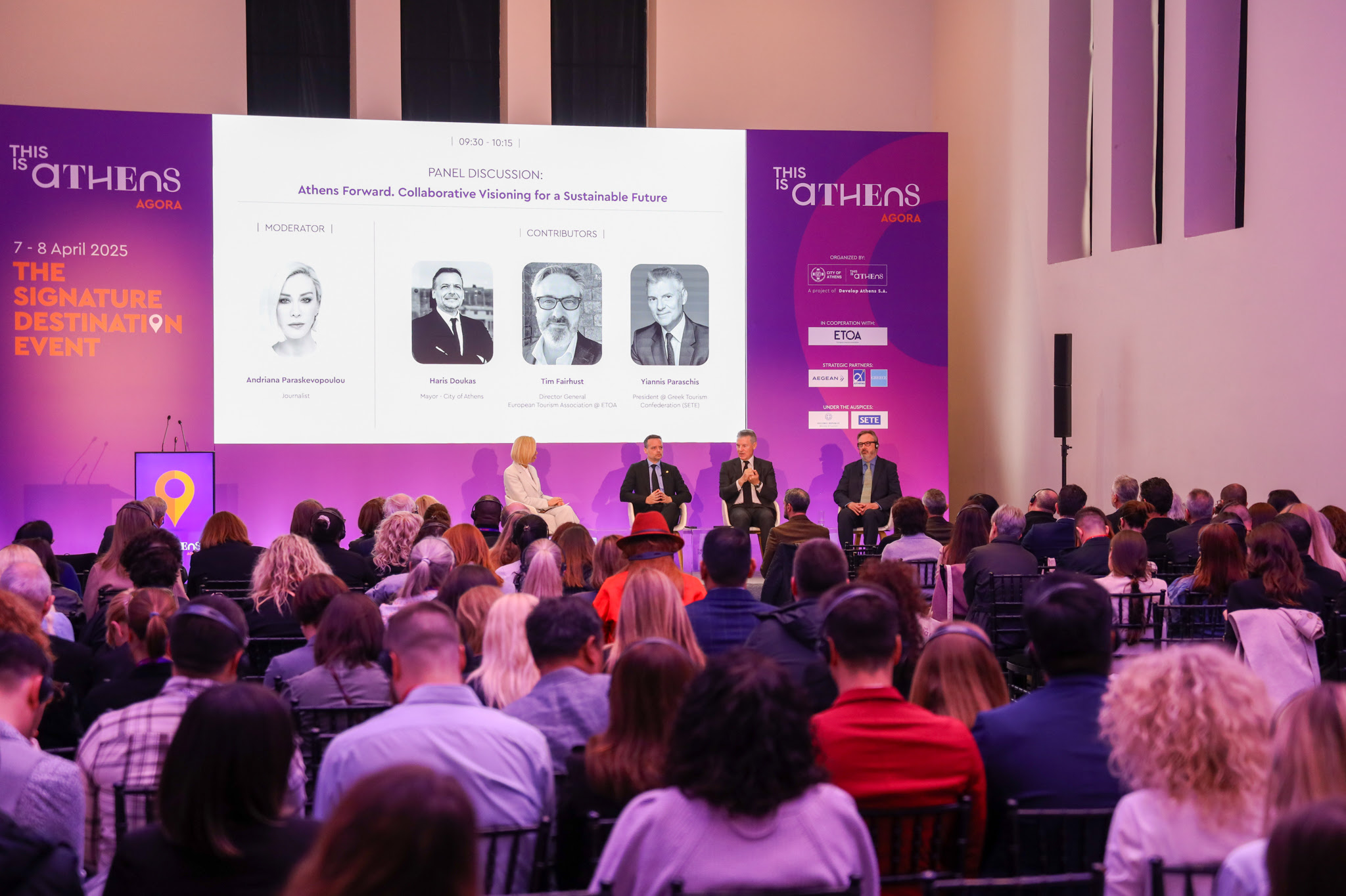 Από την πλευρά του, ο Πρόεδρος του Συνδέσμου Ελληνικών Τουριστικών Επιχειρήσεων (ΣΕΤΕ) και Διευθύνων Σύμβουλος του Διεθνούς Αεροδρομίου Αθηνών (ΔΑΑ), Ιωάννης Παράσχης, στην ομιλία του, μεταξύ άλλων, σημείωσε: «H Αθήνα διανύει τα τελευταία χρόνια μια εξαιρετικά δυναμική περίοδο τουριστικής ανάπτυξης, έχοντας κατακτήσει πλέον μια από τις κορυφαίες θέσεις ανάμεσα στους ευρωπαϊκούς αστικούς προορισμούς. Καθώς καλούμαστε να αντιμετωπίσουμε ένα ευρύ φάσμα προκλήσεων, με έμφαση στη διαχείριση και στην ενίσχυση του βιώσιμου αποτυπώματος της πόλης μας, η αξιοποίηση των συνεργασιών αποτελεί έναν κρίσιμο και καθοριστικό παράγοντα. Η σημαντική πρωτοβουλία του Δήμου Αθηναίων, This isAthens – Agora εμπεριέχει την έννοια του διαλόγου και της συνεργασίας και συγκεκριμένα της αυτοδιοίκησης και του ιδιωτικού τομέα, με στόχο τη συντονισμένη προσέγγιση σε θέματα τουριστικής ανάπτυξης. Αποτελεί χρέος όλων όσοι δραστηριοποιούμαστε στους ζωτικούς κλάδους του τουρισμού και του ταξιδιού να διαφυλάξουμε και να ενισχύσουμε όσα έχουμε πετύχει, έχοντας τώρα μια σημαντική ευκαιρία να συνεχίσουμε να επενδύουμε στην ποιότητα, τη βιωσιμότητα και την εξωστρέφεια για το επόμενο σημαντικό κεφάλαιο της εξέλιξης και της αναβάθμισης της πόλης μας ως κορυφαίου τουριστικού προορισμού».