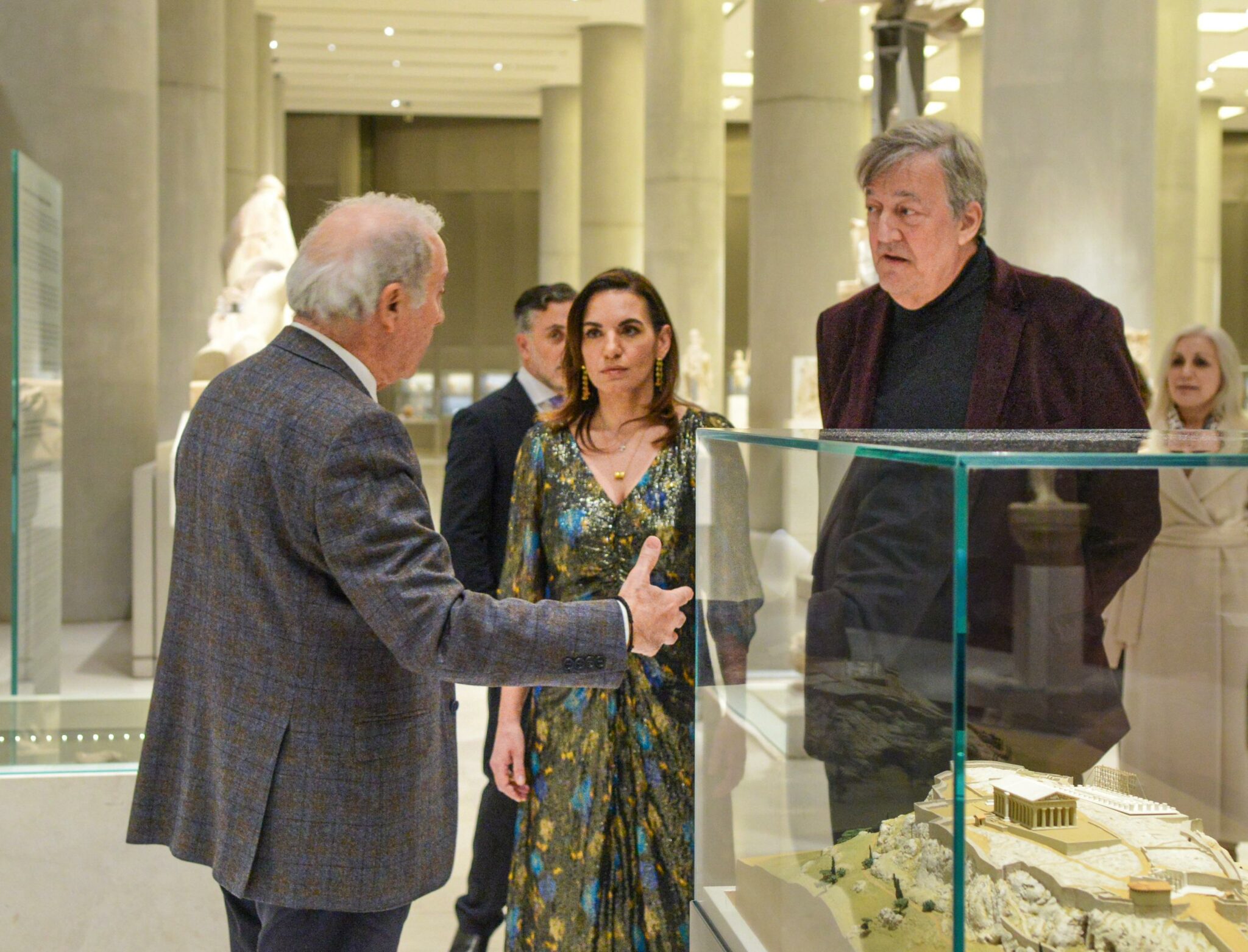 Σε μια εκδήλωση στο Μουσείο της Ακρόπολης, το Υπουργείο Τουρισμού τίμησε τον Sir Stephen Fry για την πολύτιμη συνεισφορά του στην προώθηση της ελληνικής φιλοξενίας, του ελληνικού πολιτισμού και την ακούραστη στήριξή του στην επανένωση των Γλυπτών του Παρθενώνα.