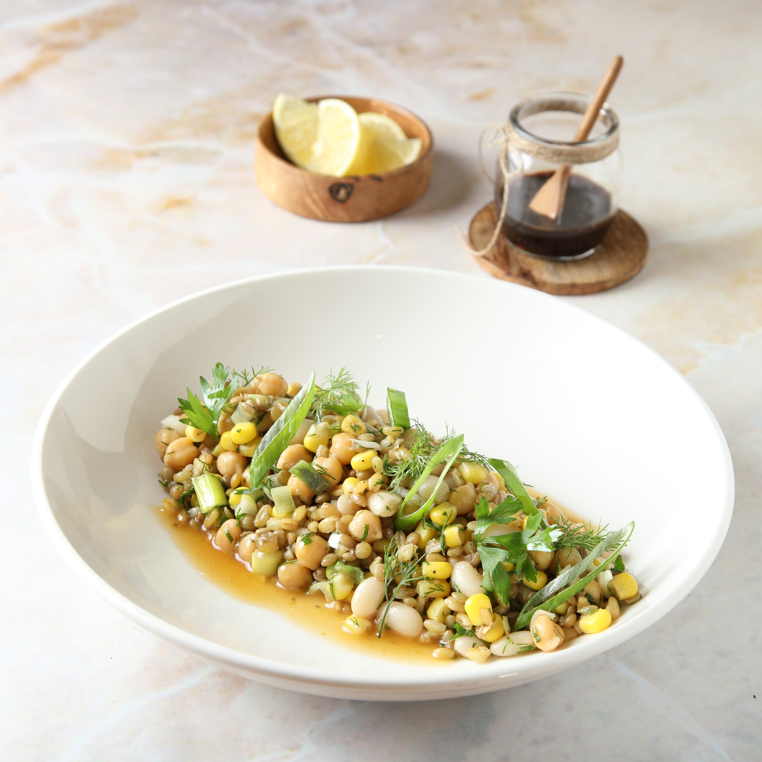 όσπρια με σιτάρι κα σος λεμονιού