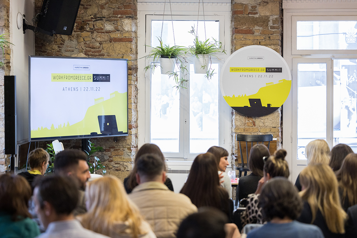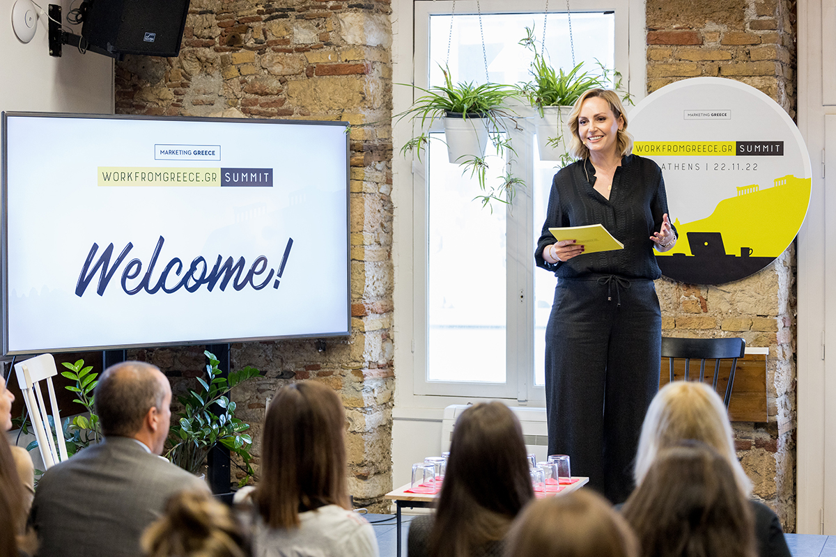 Στην έναρξη της εκδήλωσης η κ. Ιωάννα Δρέττα, CEO της Marketing Greece μίλησε για τον «Έναν χρόνο παρουσίας του workfromgreece.gr, της πρωτοβουλίας της Marketing Greece, που απευθύνει ανοικτή πρόσκληση στη διεθνή κοινότητα των digital nomads και καλεί το κοινό στην Ελλάδα για να μετατρέψει τη ζωή στο γραφείο σε εμπειρία ζωής», σημειώνοντας πως «είναι βασική μας πεποίθηση ότι οι digital nomads μπορούν να αποτελέσουν ένα μοχλό βιώσιμης τουριστικής ανάπτυξης, συμβάλλοντας στην άμβλυνση της εποχικότητας, στην ενίσχυση των εσόδων στους προορισμούς, αλλά και στη δημιουργία ενός δικτύου πρεσβευτών για τη χώρα, αφού οι ψηφιακοί νομάδες γνωρίζουν τους προορισμούς εις βάθος και τους αγαπούν». Κλείνοντας ανέφερε ότι «με την υποστήριξη των χορηγών COSMOTE, AEGEAN, EUROBANK και υπό την αιγίδα της Ελληνικής Κυβέρνησης δημιουργήσαμε περιεχόμενο χρηστικό αλλά και εμπνευστικό, κάναμε δράσεις για να αυξήσουμε το ενδιαφέρον των προορισμών γύρω από το θέμα, και δώσαμε ώθηση στην επικοινωνία της χώρας μας».