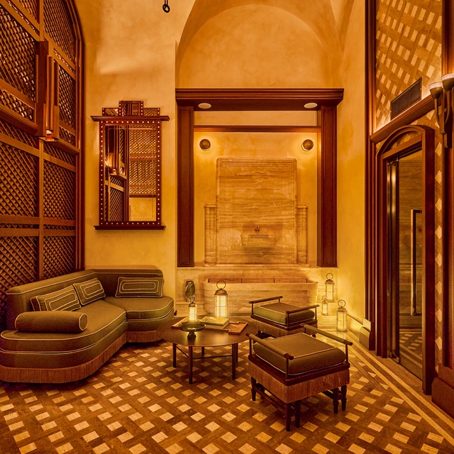 Η αφήγηση του χώρου βασίζεται στη μετάβαση. Θερμές και ψυχρές εναλλαγές, ατμός, μάρμαρο, νερό, σκιές και υφές συνθέτουν μια διαδρομή ευεξίας που παραπέμπει στις κλασικές τελετουργίες καθαρμού και αναζωογόνησης. Σε αυτό το σκηνικό, το χαμάμ αποκτά πρωταγωνιστικό ρόλο, μεταφέροντας στη Ρώμη μια εμπειρία βαθιά συνδεδεμένη με την έννοια της φροντίδας του σώματος ως τελετής.