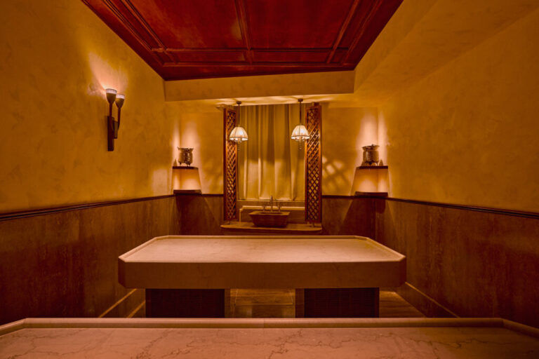 Το νέο spa αντλεί την έμπνευσή του από δύο κόσμους με λουτρική παράδοση, τα αρχαία ρωμαϊκά λουτρά και το οθωμανικό χαμάμ. Το αποτέλεσμα, πέρα από αισθητική αναφορά στην Ανατολή, είναι και μια εμπειρία που επιχειρεί να αποδώσει τη χαλαρή πολυτέλεια του ατμού, του νερού, της θερμότητας και του χρόνου που κυλα αργά.