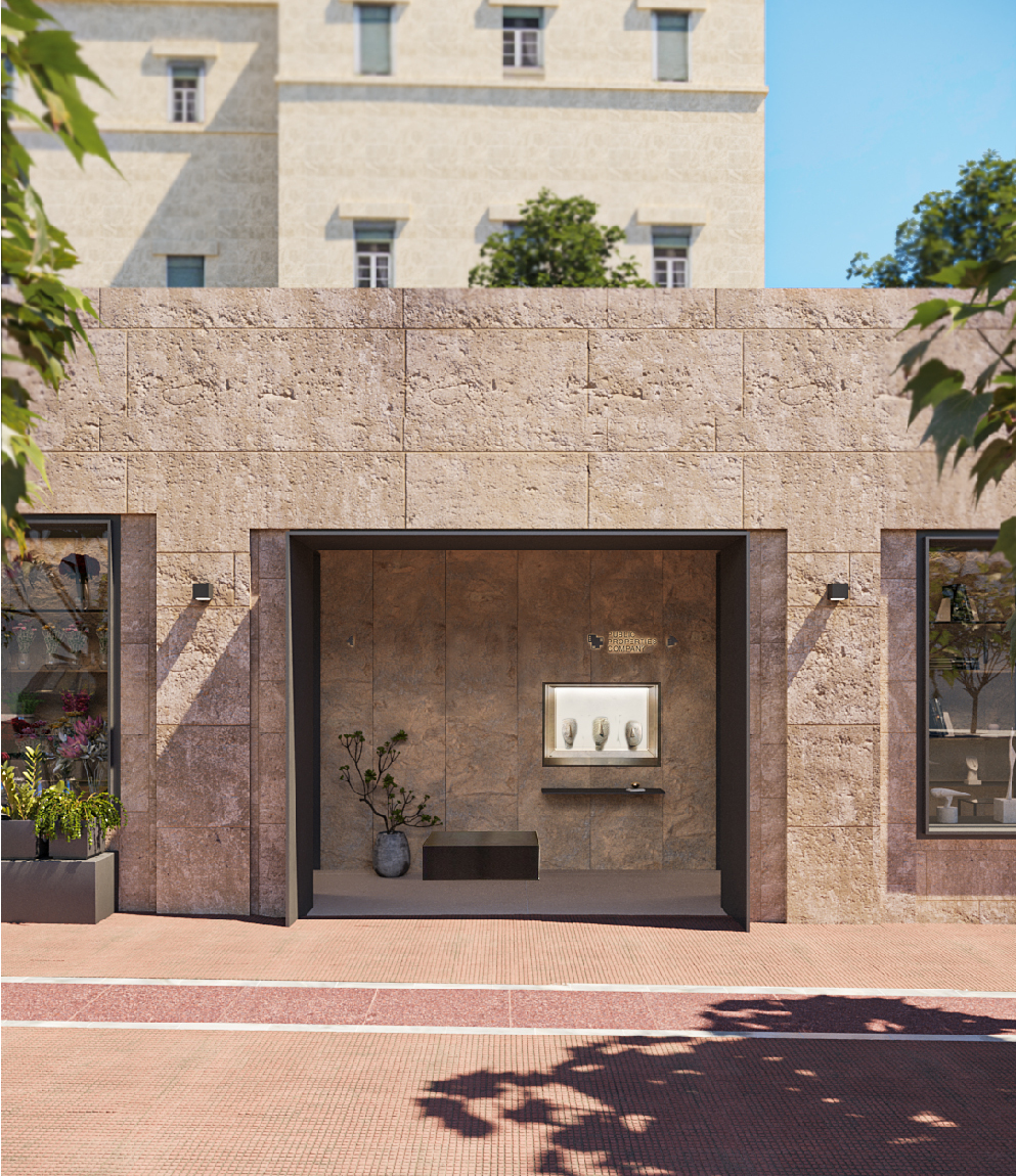 Όπως προβλέπει η αρχιτεκτονική μελέτη, αφαιρούνται οι πρόσθετες εξωτερικές κατασκευές, οι οποίες αλλοιώνουν τον χαρακτήρα του μνημείου και εκσυγχρονίζεται η κύρια όψη επί της λεωφόρου Βασιλίσσης Σοφίας, κατά μήκος των καταστημάτων. Διατηρούνται δύο ανθοπωλεία, στα δύο άκρα των καταστημάτων και προστίθενται Εκθετήρια της Βουλής και του ΟΔΑΠ και βοηθητικοί χώροι εξυπηρέτησης. Τα καταστήματα που θα λειτουργήσουν ως Εκθετήρια, θα ενοποιηθούν με εσωτερικές διανοίξεις των εσωτερικών τοιχίων και διαδρόμους. Επιπλέον, δημιουργούνται ημιυπαίθριοι χώροι, στους οποίους και θα μπορούν να φιλοξενούνται περιοδικές εκθέσεις.