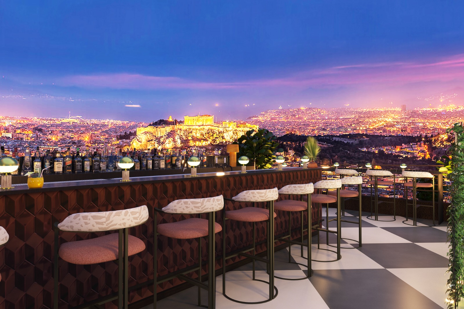 Το πιο ελκυστικό κομμάτι του κτηρίου θα είναι το roof top bar – εστιατόριο, με θέα την Ακρόπολη. Οι επισκέπτες θα έχουν την ευκαιρία να γευτούν ένα συναρπαστικό menu Nikkei, συνδυάζοντας τις γεύσεις της ιαπωνικής και περουβιανής κουζίνα, μαζί με μια μεγάλη επιλογή δημιουργιών mixology και εκλεκτών κρασιών. Το roof top απλώνεται σε τρία επίπεδα και περιλαμβάνει το rooftop raw bar, όπου προσφέρει ιαπωνικό σούσι και περουβιανό ceviche, το εσωτερικό bar και κουζίνα, που περιβάλλεται από ένα lounge χώρο, καθώς και τον prive χώρο με θέα.