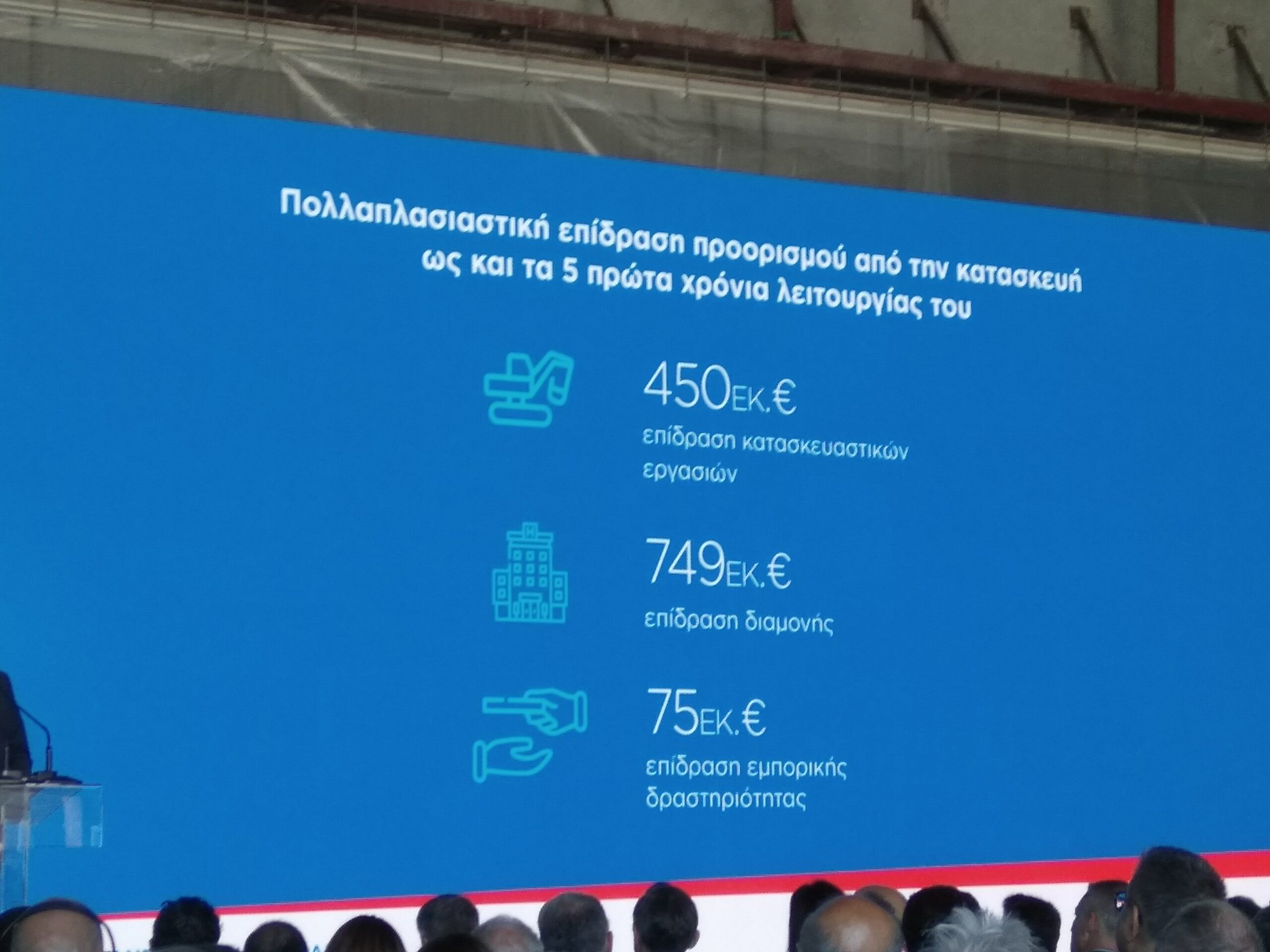 Από την πλευρά του ο καθηγητής Νικόλαος Γεωργόπουλος παρουσίασε μία μελέτη για τον οικονομικό αντίκτυπο της επένδυσης στην περιοχή. Το ύψος της επένδυσης θα φτάσει σε 340 εκατ. ευρώ, χωρίς τον ΦΠΑ. Η συνολική θετική επίδραση από τη λειτουργία του νέου προορισμού στο συγκρότημα θα ανέλθει για την ελληνική οικονομία σε 1,25 δισ. ευρώ έως και την πρώτη 5ετία. Ειδικότερα, η πολλαπλασιαστική επίδραση του προορισμού από την κατασκευή έως και τα 5 χρόνια λειτουργίας του θα ανέλθει σε 450 εκατ. ευρώ σε ότι αφορά τις κατασκευαστικές εργασίες, σε 749 εκατ. ευρώ σε ότι αφορά τις υπηρεσίες διαμονής και σε 75 εκατ. ευρώ σε ότι αφορά την εμπορική δραστηριότητα.