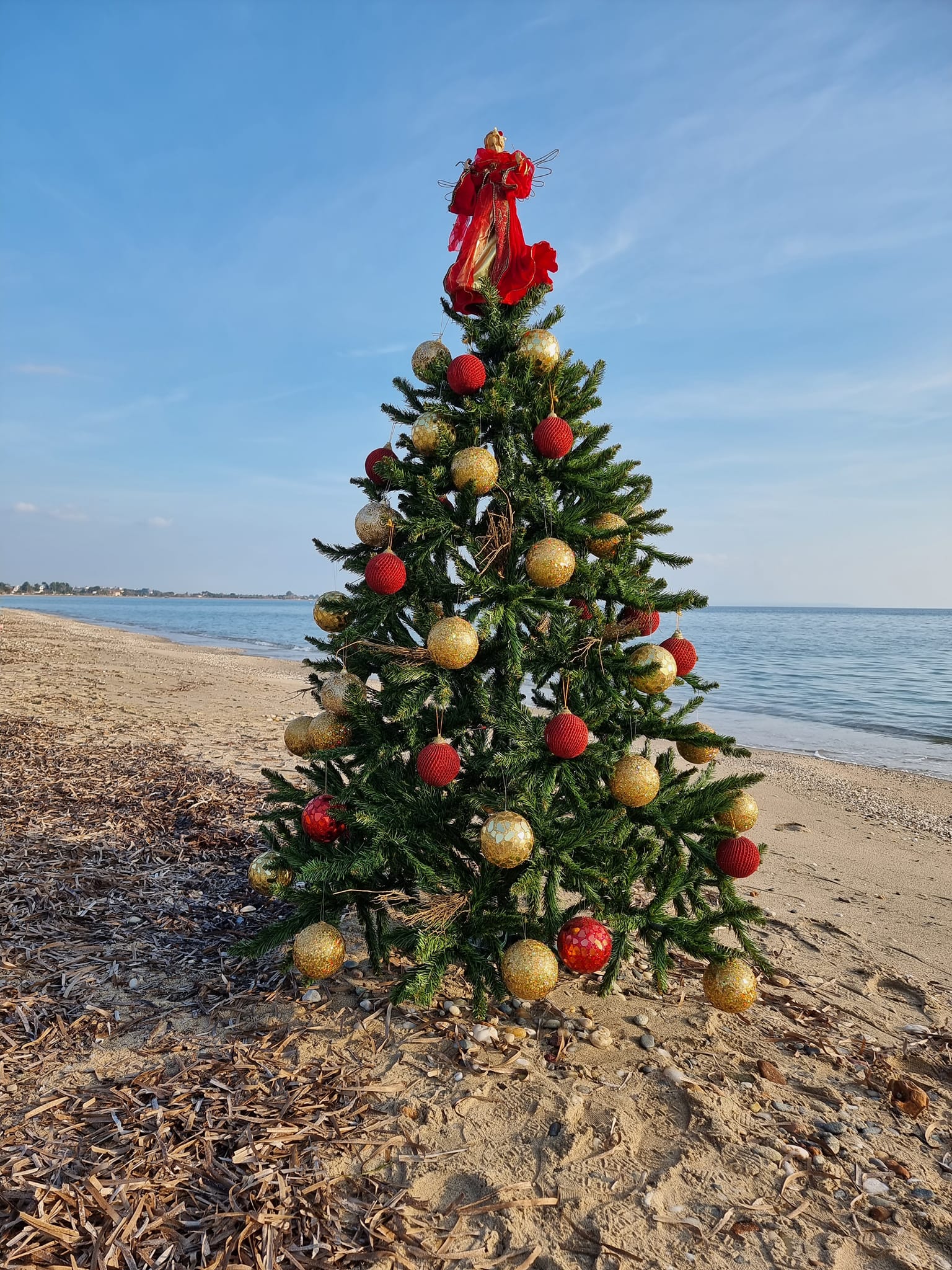 Iδιοκτήτρια ταβέρνας και ξενοδοχειακού καταλύματος στη Χαλκιδική αποφάσισε να πρωτοτυπήσει και τοποθέτησε πριν από δύο ημέρες ένα στολισμένο χριστουγεννιάτικο δέντρο στην άμμο, σε παραλία της Σωζόπολης.