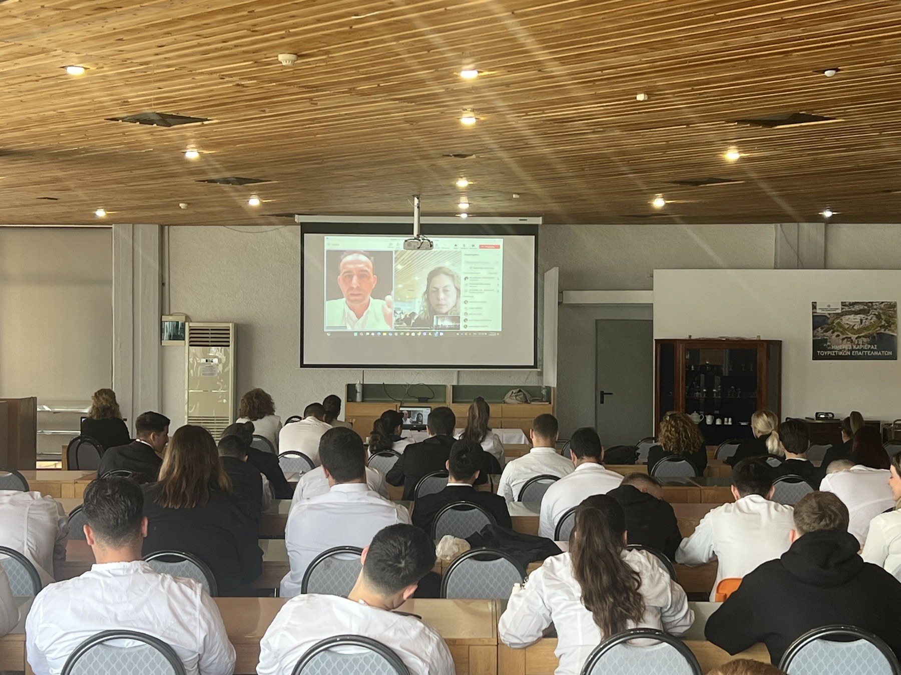 Ομιλητές από τον ακαδημαϊκό και ξενοδοχειακό κλάδο, το WWF και εκπαιδευτικοί της σχολής μίλησαν στους καταρτιζόμενους της Σχολής για τον βιώσιμο τουρισμό, για τις πρακτικές περιβαλλοντικής διαχείρισης στα ξενοδοχεία καθώς και για τα προγράμματα πρόληψης σπατάλης τροφίμων. Την ημερίδα άνοιξαν με τις ομιλίες τους ο Δρ. Δημήτρης Προκοπίου, εκπαιδευτικός της Σχολής, Σύμβουλος Τοπικής Αυτοδιοίκησης, ο οποίος παρουσίασε την περίπτωση της Μυκόνου και ο Δρ. Γιάννης Σπιλάνης, Καθηγητής Τμήματος Περιβάλλοντος Πανεπιστημίου Αιγαίου, Διευθυντής Παρατηρητηρίου Βιώσιμου Τουρισμού Αιγαίου, ο οποίος αναφέρθηκε στις διαστάσεις της βιώσιμης ανάπτυξης, σε βασικές έννοιες, όπως η φέρουσα ικανότητα και παρουσίασε τη μεθοδολογία που ακολουθείται κατά τον σχεδιασμό στρατηγικής βιώσιμου τουρισμού σε επίπεδο προορισμού. Ο κ. Σπιλάνης, τόνισε ιδιαίτερα τη σημασία και την αναγκαιότητα της συμμετοχής της τοπικής κοινωνίας στον σχεδιασμό βιώσιμου τουρισμού. Παράλληλα, επισήμανε ότι θα πρέπει και ο τόπος να είναι ελκυστικός, όχι μόνο το κατάλυμα.