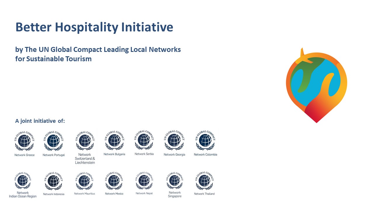 Το UN Global Compact Network Greece ανακοινώνει την υλοποίηση της πρωτοβουλίας “Better Hospitality’’ που αφορά το βιώσιμο τουρισμό και εστιάζει στον ξενοδοχειακό κλάδο. Πρόκειται για μια παγκόσμια συνεργατική πρωτοβουλία των Τοπικών Δικτύων του UN Global Compact που στοχεύει στην υποστήριξη του μετασχηματισμού του συγκεκριμένου κλάδου σε σχέση με την επίτευξη ουδετερότητας του άνθρακα μέσω της ευαισθητοποίησης και της δημιουργίας εκπαιδευτικού υπόβαθρου, της ανταλλαγής εμπειριών και πρακτικών μεταξύ peers και τον καθορισμό κινήτρων για τις επιχειρήσεις ως προς τον σχεδιασμό και την εφαρμογή σχετικών μέτρων.